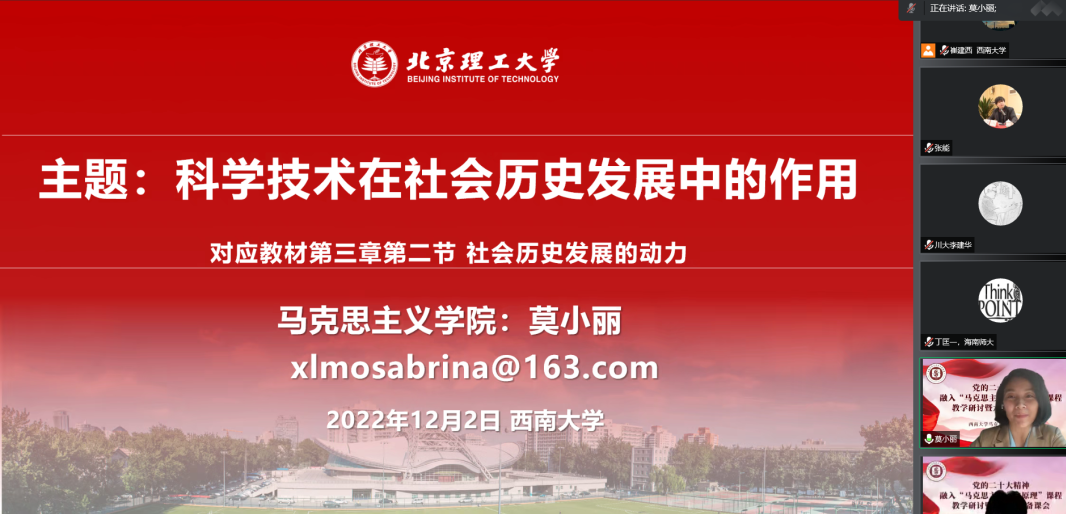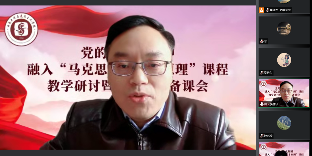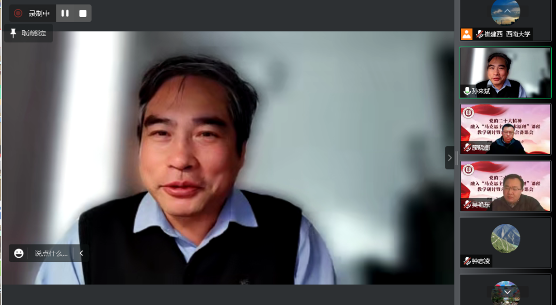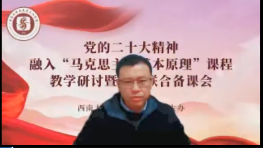 2022年12月2日上午,党的二十大精神融入“马克思主义基本原理”课程教学研讨暨六校联合备课会在云端顺利召开。本次活动由必赢3003no1线路检测中心必赢3003no1线路检测中心主办,全国高校思想政治理论课“手拉手”集体备课中心(必赢3003no1线路检测中心-重庆市)、重庆市大中小学思政课一体化建设协同创新中心承办,四川大学必赢3003no1线路检测中心、北京理工大学必赢3003no1线路检测中心、华中师范大学必赢3003no1线路检测中心、贵州师范大学必赢3003no1线路检测中心、海南师范大学必赢3003no1线路检测中心五所高校联合协办。会议分为开幕式、专家导学、示范教学、研讨交流、集体备课五个阶段,由必赢3003no1线路检测中心必赢3003no1线路检测中心副院长吴艳东教授、必赢3003no1线路检测中心必赢3003no1线路检测中心副院长王丰教授主持。