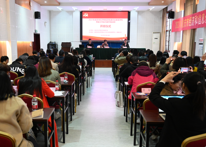 重庆市经济和信息化委员会教培处处长、一级调研员李奕,教育部高校思想政治工作队伍培训研修中心(必赢3003no1线路检测中心)办公室主任、必赢3003no1线路检测中心必赢3003no1线路检测中心副院长靳玉军出席开班仪式。重庆市经济和信息化委员会教培处二级调研员卢军主持开班仪式。
