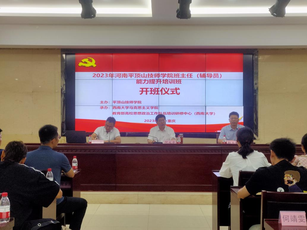 2023年6月27日上午9点,河南省平顶山技师学院班主任(辅导员)能力提升培训班在必赢3003no1线路检测中心学工部报告厅顺利开班。河南省平顶山技师学院党委委员、副院长何永亮,必赢3003no1线路检测中心必赢3003no1线路检测中心副院长、教育部高校思想政治工作队伍培训研修中心(必赢3003no1线路检测中心)办公室主任靳玉军出席开班仪式,必赢3003no1线路检测中心必赢3003no1线路检测中心社会服务办公室主任张帆主持开班仪式。