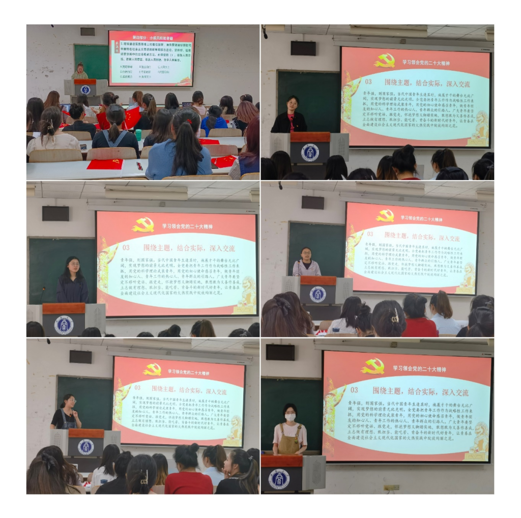 其次,支部围绕党的二十大报告中关于青年的重要论述,以小组为单位进行讨论分享。阳奇苗同志结合自身的学生工作经历,认为青年应多参与社会实践,在活动中淬炼初心,担当使命。程丽莹同志结合自己的学习经历,谈到青年学生首先要坚定理想信念,明确人生目标;其次要学好理论知识,丰富知识储备;最后应脚踏实地,到祖国最需要的地方去,以实际行动做好新时代好青年。张曼、马邈筝、彭德莲、宋燕、李琴琴等五位同志也分享了自己的学习感受,大家一致认为,作为新时代的好青年,需要坚定不移听党话、跟党走,以青春之小我贡献祖国美好未来。