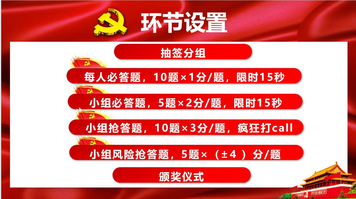接着,支部还组织开展了知识竞赛活动。此次竞赛共设四个环节,通过个人作答、小组共答、电话抢答以及风险竞答的方式,让同志们在“答”中学,在“比”中想,在“竞”中思,极大调动了同志们的学习热情。各小组团结协作、默契配合,经过四轮的激烈角逐,共产生一、二、三等奖各一组。此外,支部还向“学习强国”年度学习积分前六名的同志颁发了“学习标兵”荣誉证书,以激励党员同志重视日常理论学习,不断提升党性修养。