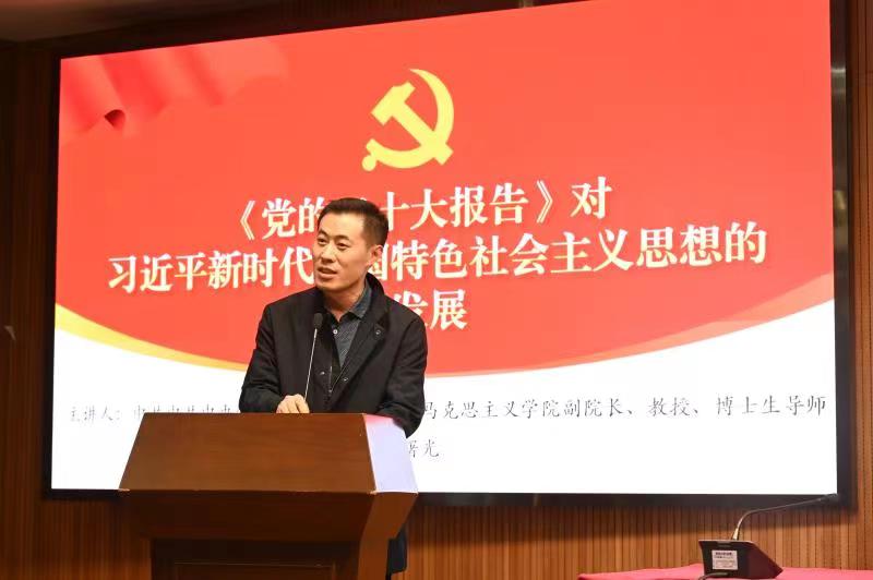 2022年10月28日下午,必赢3003no1线路检测中心党委和资产经营有限公司直属党支部在必赢3003no1线路检测中心505报告厅联合开展学习贯彻党的二十大精神教职工政治理论专题学习会。会议邀请中共中央党校(国家行政学院)必赢3003no1线路检测中心副院长陈曙光教授做“《党的二十大报告》对习近平新时代中国特色社会主义思想的新发展”专题报告。学习会由必赢3003no1线路检测中心党委副书记、院长白显良主持,必赢3003no1线路检测中心和资产经营有限公司的全体教职工参加。