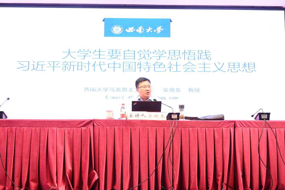 5月21日下午,学院邀请学院副院长吴艳东教授为全体学员讲授了题为“大学生要自觉学思悟践习近平新时代中国特色社会主义思想”的专题党课。吴艳东副院长从为什么学、学什么、怎么学三个方面带领学员们深入学习习近平新时代中国特色社会主义思想,勉励学员们用习近平新时代中国特色社会主义思想凝心铸魂,勇于承担历史责任,在激扬青春、奉献社会的过程中书写无愧于时代的壮丽篇章。