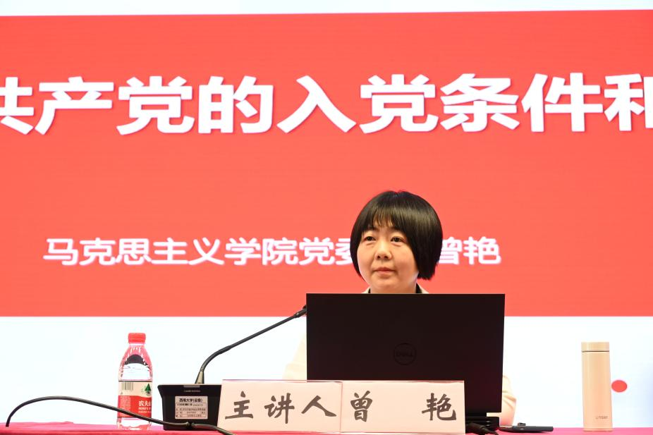 5月13日上午,学院党委副书记曾艳为全体学员讲授题为“中国共产党党员条件和入党程序”的专题党课。曾艳副书记从申请入党的条件和要求、党员发展的程序、党员材料撰写规范以及党员教育管理四个方面阐释了实现组织上入党所需具备的条件和程序,鼓励全体学员要端正思想,从严从实要求自己,争做先锋,敢为人先,积极以实际行动向党组织靠拢。