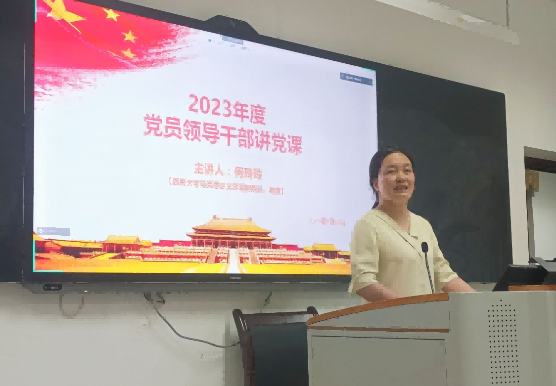 最后,学院副院长何玲玲教授为支部全体成员讲党课。何院长围绕“马克思主义行是中国共产党把握历史主动的根本所在”这一论断展开讲授。何院长首先从什么是党把握历史主动讲起,明确了其内在意蕴。