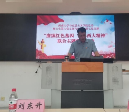 为进一步推进学习贯彻习近平新时代中国特色社会主义思想主题教育走深走实,坚定历史自信,弘扬历史主动精神,2023年6月9日下午在必赢3003no1线路检测中心必赢3003no1线路检测中心研究生第三教室,硕士生第六党支部与硕士生第七党支部联合开展“赓续红色基因,传承西大精神”主题党日活动,必赢3003no1线路检测中心档案馆、校史馆、博物馆副馆长、副教授郑劲松,必赢3003no1线路检测中心党委副书记刘东升出席此次活动。硕士生第六党支部与硕士生第七党支部全体成员参加。会议由硕士生第七党支部书记黄岚主持。