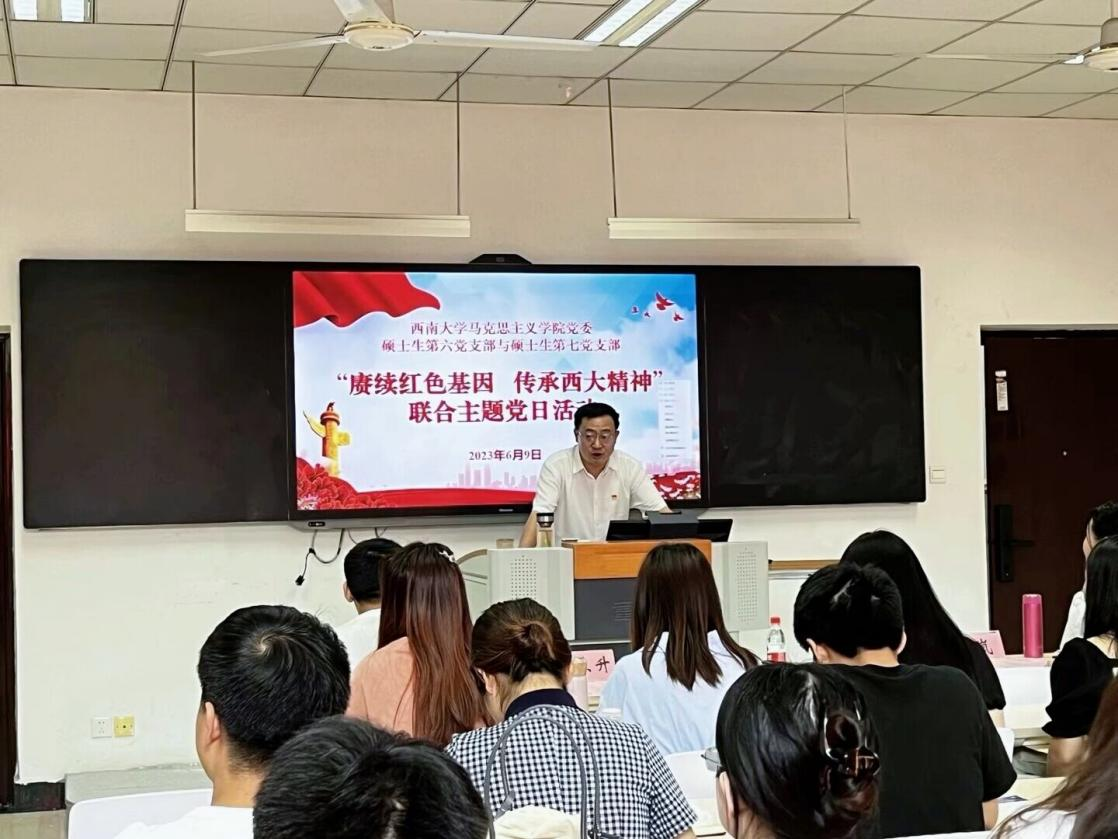 随后,郑劲松副馆长讲授“党史在西大”特别主题党课,强调发掘校史红色基因的重要性及其意义,并在第十六个档案日这一特殊节点指出梳理档案资料的意义,同时鼓励马院学子重视、积极从档案史料中挖掘红色基因,一展马院特色。讲述西大办学117年精神血脉与历史时空,生动呈现必赢3003no1线路检测中心校史中的红色印记,充分挖掘校史中的党史故事,以抗美援朝烈士杨肖永烈士、“大地之子”侯光炯等先辈的先进事迹激励全体党员坚定理想信念,练就过硬本领,投身强国伟业。