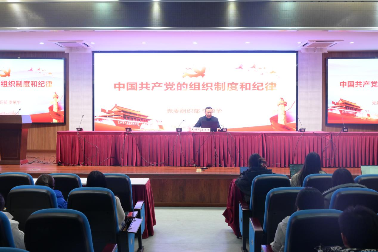 12月15日晚上,学院邀请学校党委常委、党委组织部部长李荣华为全体学员讲授题为“中国共产党的组织制度和纪律”的专题党课。李荣华部长首先向学员们深刻阐述了“党”“政党”和“中国共产党”的内涵,接着详细讲解了党的严密的组织体系、党的根本组织制度和党的纪律三个方面,并与学员们分享了许多工作中的精彩故事和生动实例。最后,李荣华部长勉励大家努力学习党的基本知识,不断提升自己,争取早日入党。