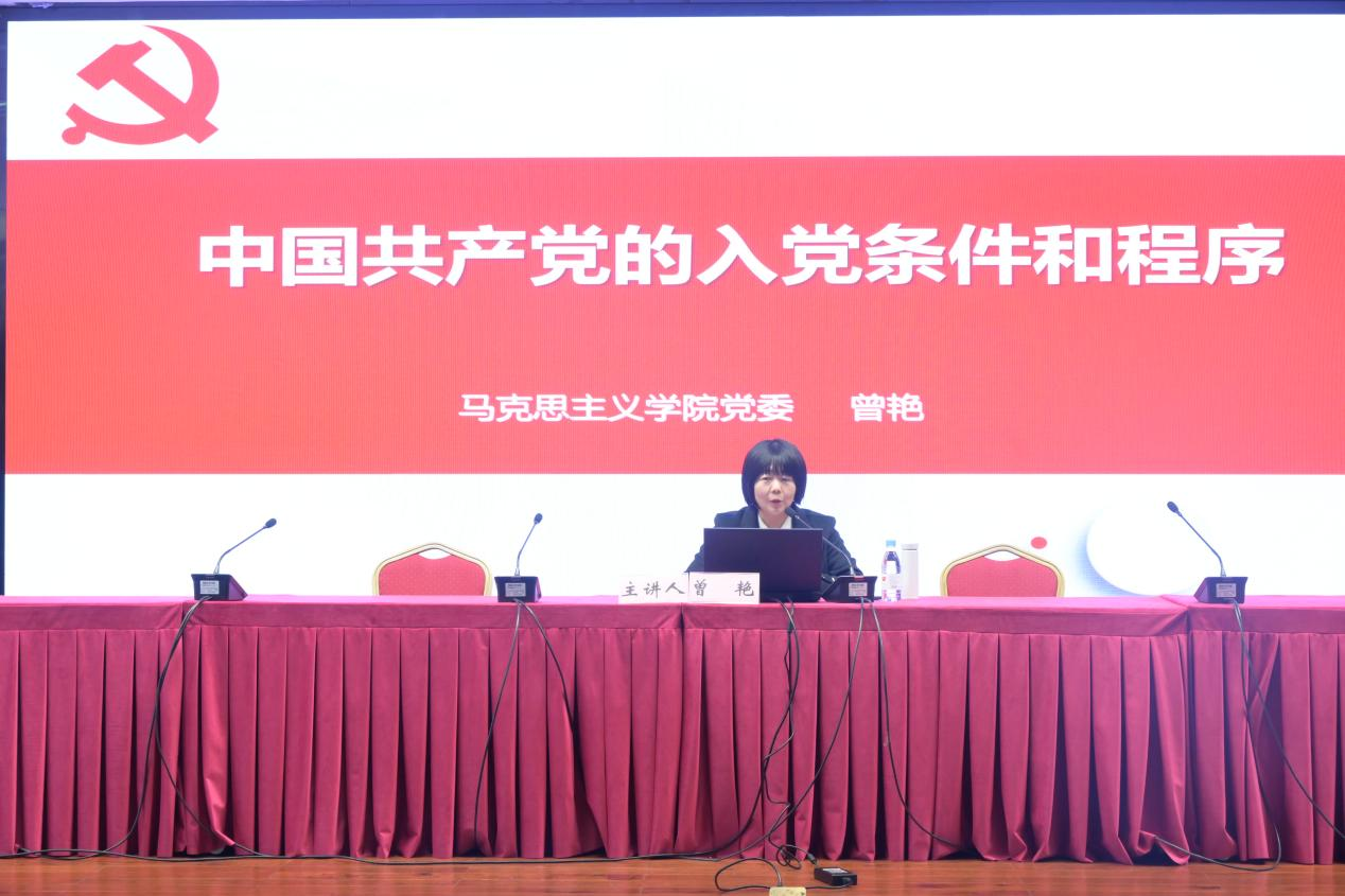 12月9日下午,学院党委副书记曾艳为全体学员讲授题为“中国共产党的入党条件和程序”的专题党课。曾艳副书记从申请入党的条件和要求、发展中共党员的程序、中共党员材料撰写规范以及党员教育管理四个方面阐释了中共党员的入党条件和程序,强调了青年大学生在入党时要注意的基本条件以及在撰写中共党员材料时的规范和准确,鼓励学员们逐步向党组织看齐、向党组织靠拢。