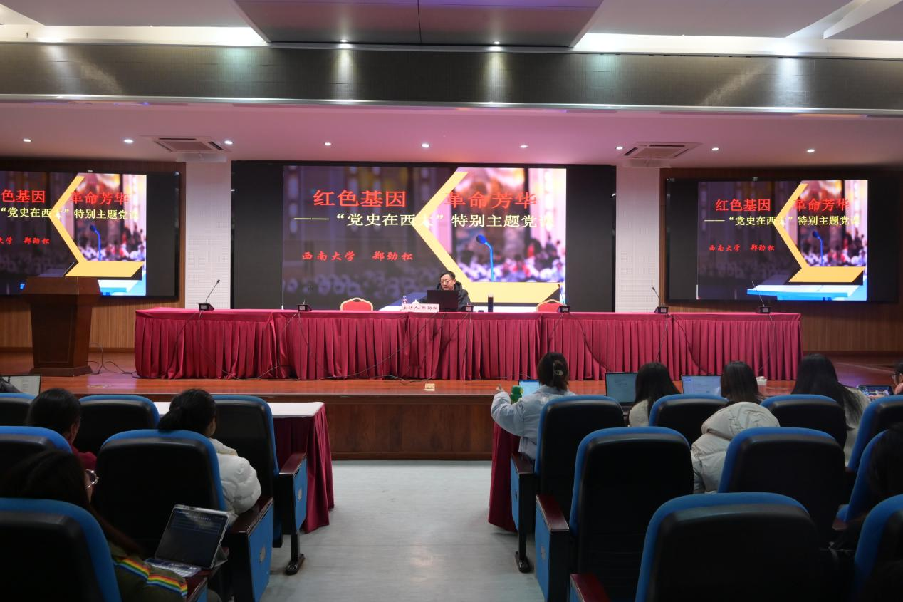 12月22日晚上,学院邀请必赢3003no1线路检测中心档案馆、校史馆、博物馆副馆长郑劲松为全体学员讲授题为“红色青春,革命芳华——‘党史在西大’特别主题党课”的专题党课。首先郑馆长通过自身例子向全体成员介绍了校史融入党史学习的缘起及重要性。其次,郑馆长从历史的维度介绍了西大从筚路蓝缕草创时期到如今双一流高校的117年建校历史。着重介绍了必赢3003no1线路检测中心校史中的红色印记。最后,郑馆长介绍校史融入党史学习的四个维度,寄语全体成员注意从优秀校友党员的事迹中汲取精神力量,不忘初心,牢记使命;从学校办学117年的历史中受到精神洗礼,传承党史优良传统,厚植文化自信。