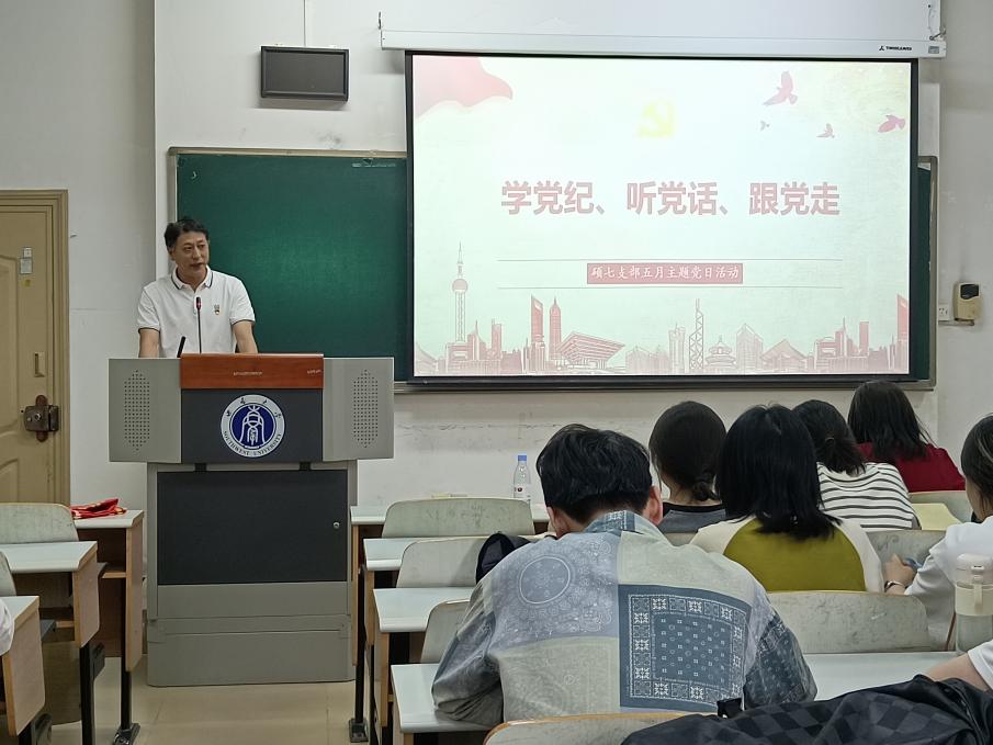 5月17日下午,必赢3003no1线路检测中心硕士生第七党支部在十教304教室开展了“学党纪、听党话、跟党走”主题党日活动。必赢3003no1线路检测中心培训与基础教育管理处副处长刘东升联系指导,党支部全体党员及入党积极分子参会,党支部书记黄岚主持。