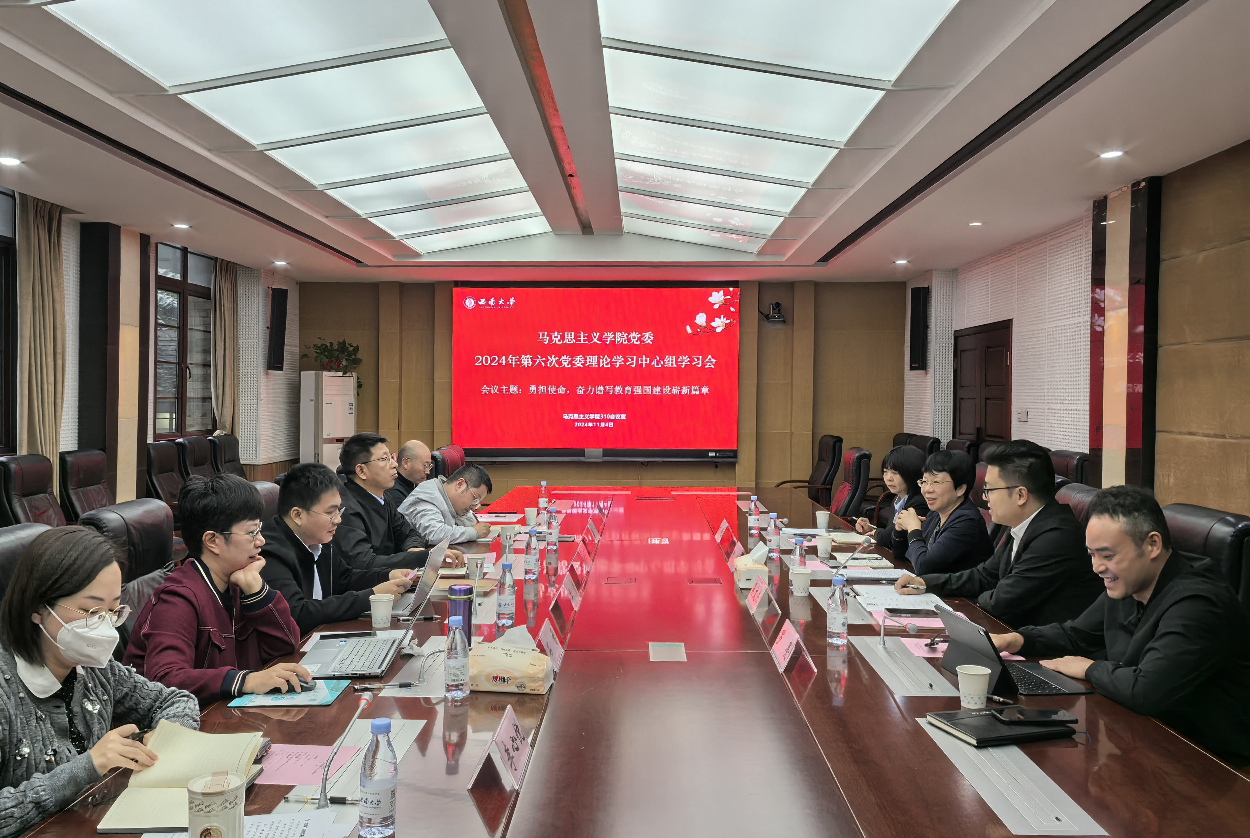 11月4日下午,学院党委理论学习中心组在学院310会议室召开2024年第六次学习会。本次学习的主题为“勇担使命,奋力谱写教育强国建设崭新篇章”。学校纪委副书记、纪委办主任、监察处处长朱敏列席指导,学院党委委员参会,党委书记吴文杰主持会议。
