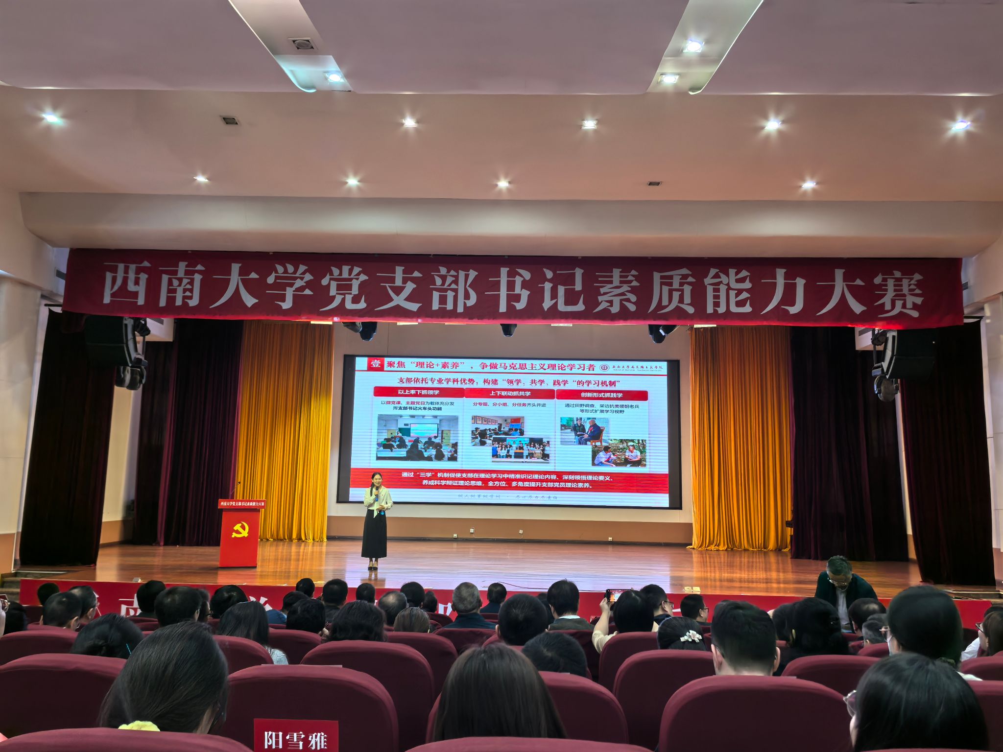 在此次大赛中,通过竞技比拼,大家不仅展现了自己作为党支部书记的综合素质与能力,更是在思想上和本领上得到了提升与锻炼。今后,学院将继续学习贯彻落实《中国共产党普通高等学校基层组织工作条例》,在学校党委的指导下,着力提升党支部书记的素质与能力,提升党支部书记队伍建设水平,筑牢基层组织坚强堡垒,以高质量党建推动事业高质量发展。