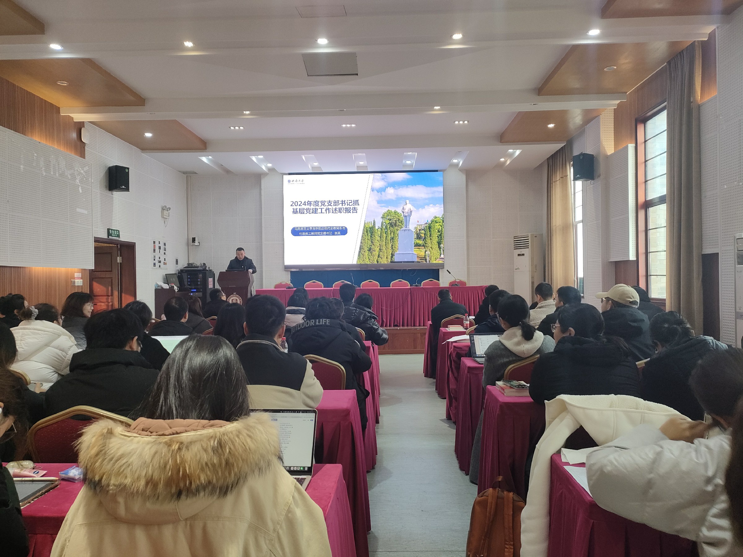 会上,学院党委23位党支部书记进行述职。各党支部书记重点围绕履职情况、党支部建设的情况和成效、支部工作存在的突出问题及下一步加强和改进工作的措施等方面逐一述职。