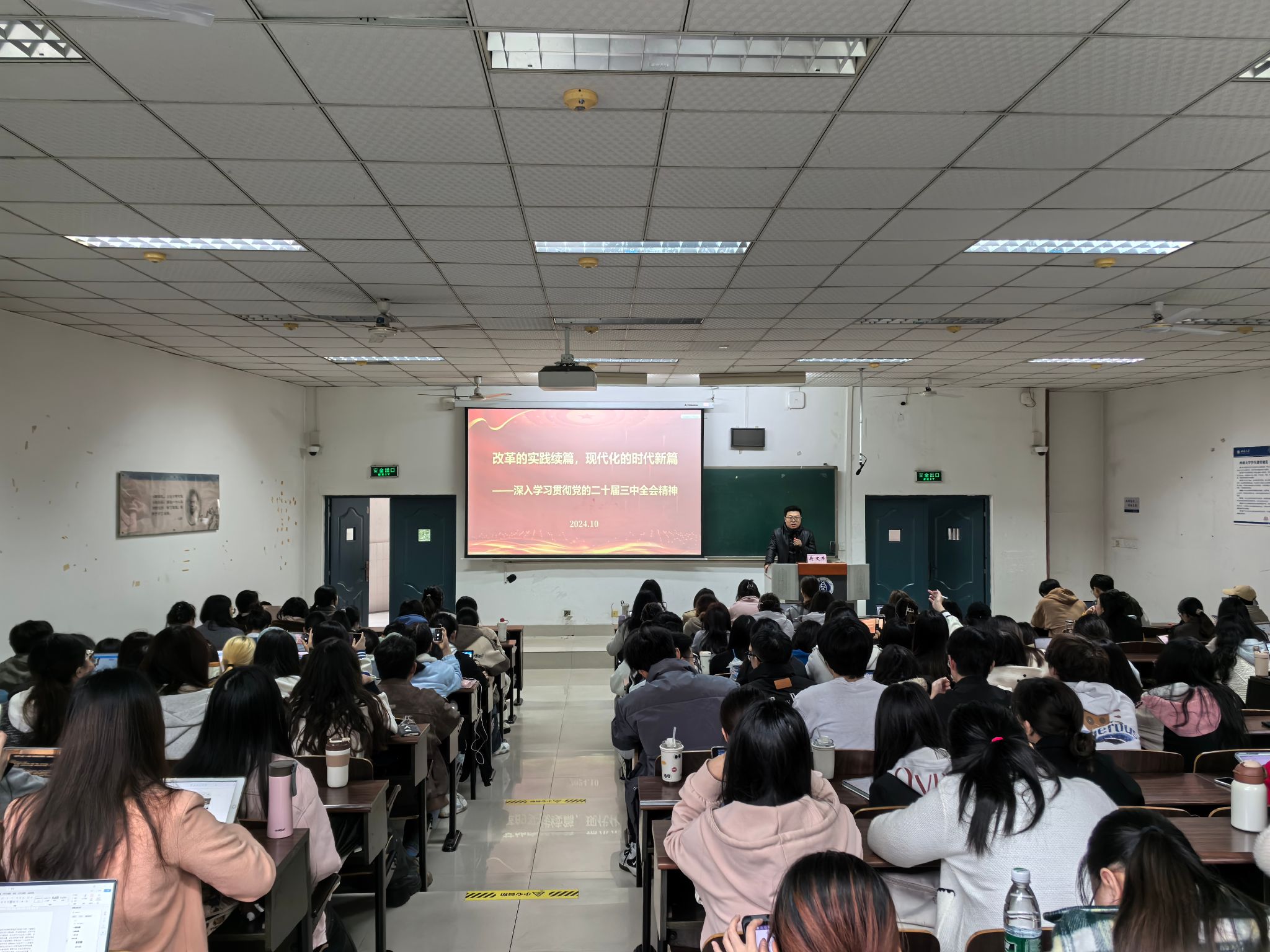 11月22日下午,学院党委书记、中共必赢3003no1线路检测中心必赢3003no1线路检测中心委员会党校校长吴文杰讲授了题为“学习贯彻党的二十届三中全会精神”的专题党课。吴文杰书记从全面深入学习领会党的二十届三中全会精神、贯彻落实党的二十届三中全会精神教育何为、贯彻落实党的二十届三中全会精神我们何为三个层次分别做了详细阐释。他强调,党的二十届三中全会是在以中国式现代化全面推进强国建设、民族复兴伟业的关键时期召开的一次十分重要的会议,并讲解了党的二十届三中全会的内容体系,鼓励全体学员要坚守对马克思主义的信仰,争做政治明白人、青春代言人和人生实干家。