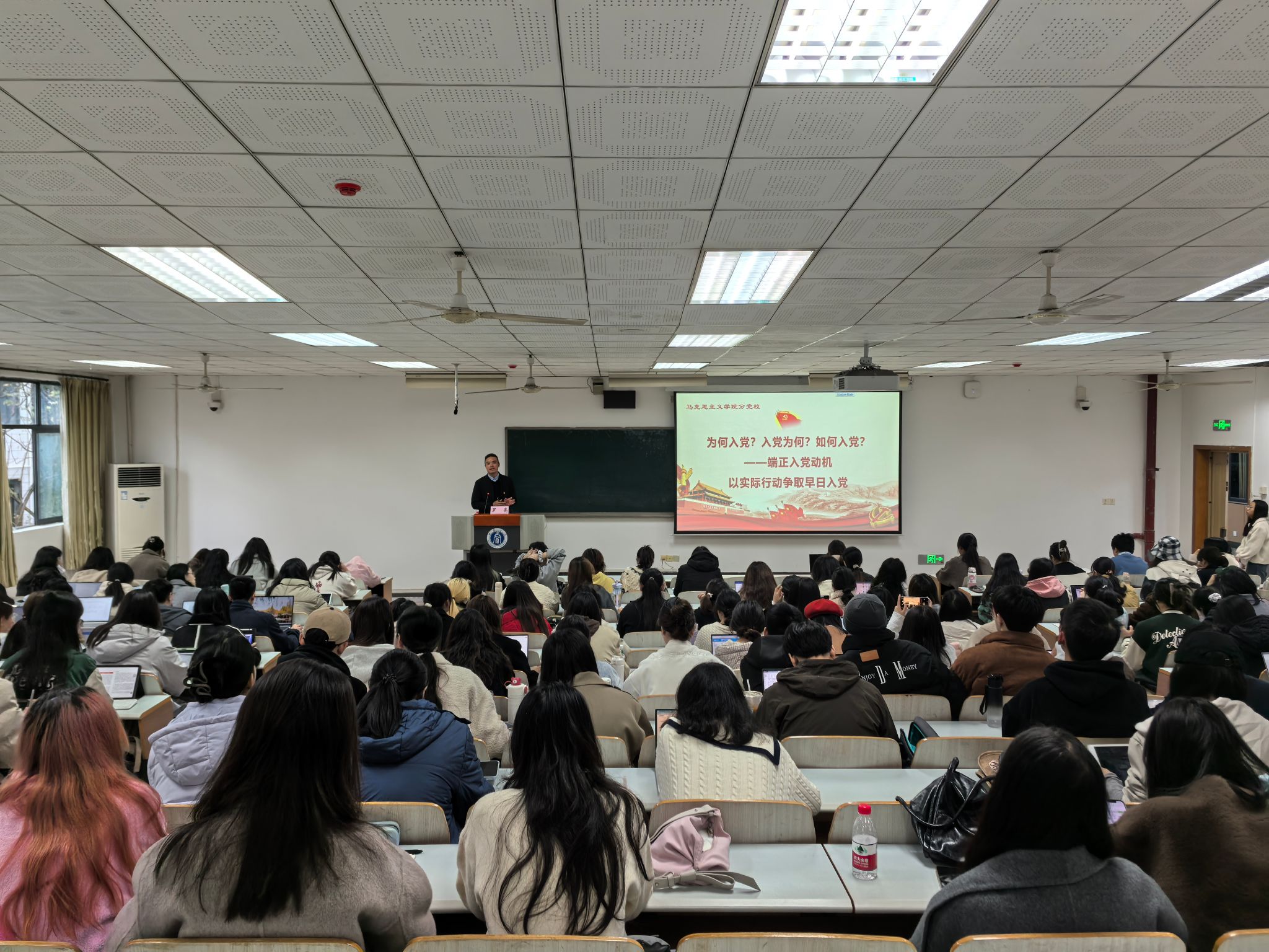 11月24日上午,学院党委委员、副院长唐斌为全体学员讲授了题为“中国共产党的指导思想”的专题党课。首先,唐斌副院长以党的历史为脉络为学员们梳理了党的指导思想的发展进程,深刻剖析每一历史阶段下党的指导思想的继承与发展。其次,对党的指导思想的最新理论结晶——习近平新时代中国特色社会主义思想展开深入解析,和学员们一同探讨了“何为新时代?”“新时代新在何处?”等重大理论问题。最后强调,作为入党积极分子,必须深入学习领会这些基本理论,强化理论武装,将来才能更好的发挥党员先锋模范作用。