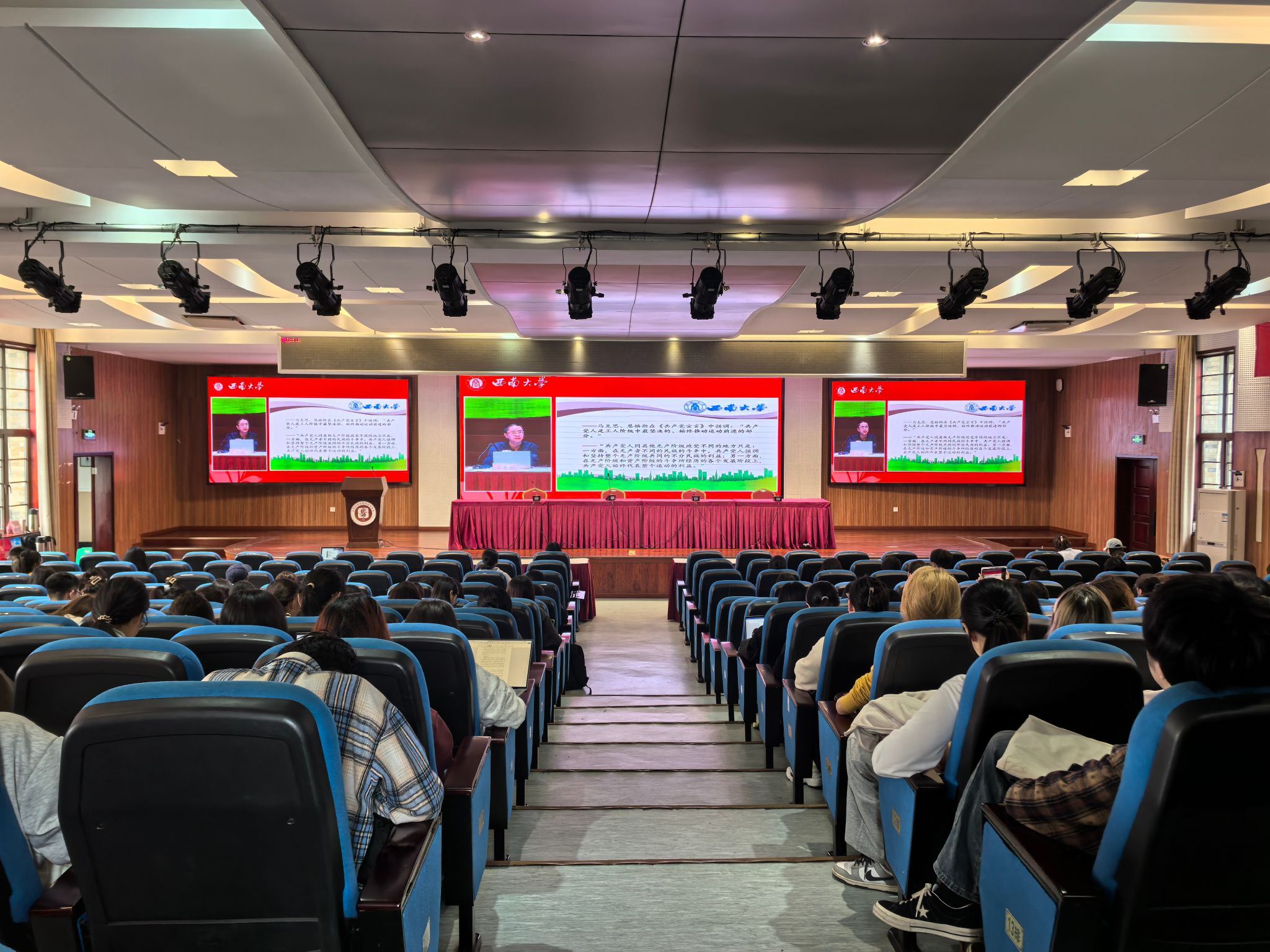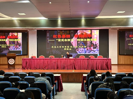 12月1日上午,学校档案馆、校史馆、博物馆副馆长郑劲松为全体学员讲授题为“红色青春,信仰芳华——‘党史在西大’”特别主题党课。首先以“百年校史如何融入党史?”开篇,围绕“初心、使命、反思、梦想”四个维度阐述了校史融入党史学习的重要性。接着重温了必赢3003no1线路检测中心校史中的红色印记,激发学员们对革命先辈们的敬仰之情,鼓舞学员们学习先辈们献身革命的伟大精神。通过列举农学生态经济学家叶谦吉、中国大熊猫之父胡锦矗、民间文学专家彭维金等知名校友的事迹,让学员们深刻感受到名师大家的高尚情操。最后寄语全体学员:“心有所信,方能行远!以史为鉴,开创未来!读懂校史,创我荣光!”鼓励学员们了解校史、读懂校史,从校史中汲取精神力量,传承红色基因,坚定历史自信!