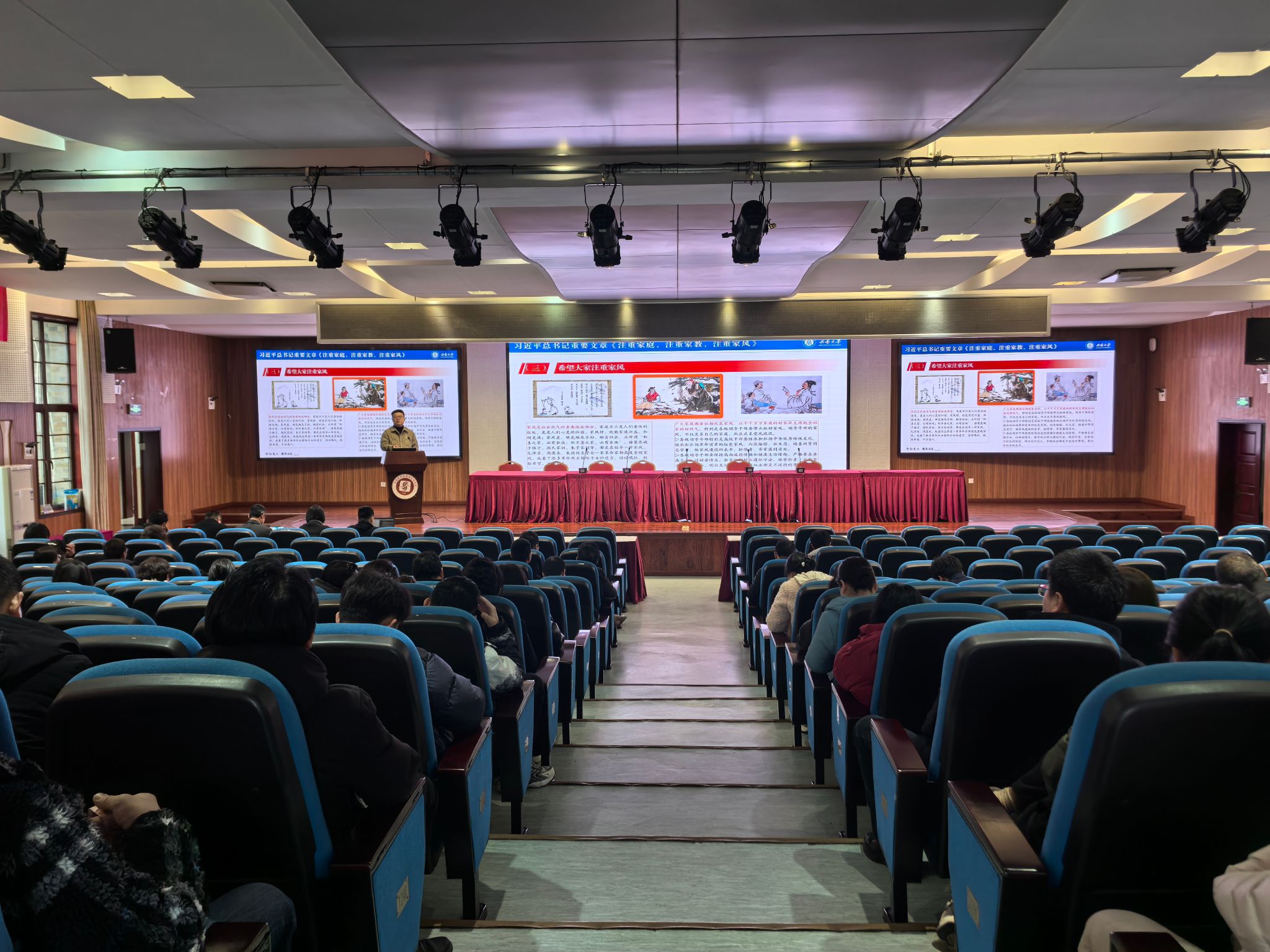 2025年221日下午,学院在505报告厅开展2025年第次教职工政治理论学习,集中学习了习近平总书记在民营企业座谈会上的重要讲话精神《求是》杂志发表的习近平总书记重要文章《注重家庭,注重家教,注重家风》2025年春季学期干部大会精神。学院全体教职工参加,本次教职工政治理论学习由学院党委书记吴文杰主持并领学。