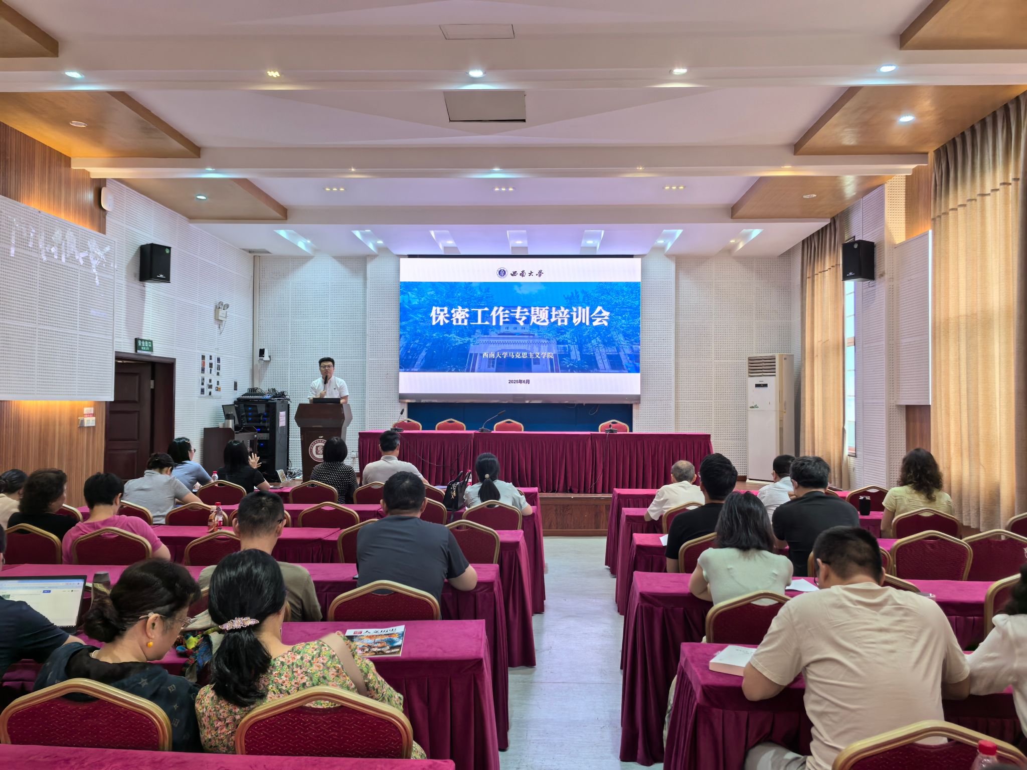 202566日下午,学院在501报告厅开展保密工作专题培训会学院全体教职工参加,学院党委书记吴文杰主讲。