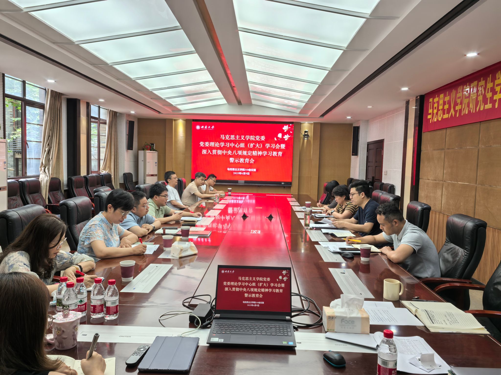 202569日下午,学院党委在学院310会议室召开2025年第三次党委理论学习中心组(扩大)学习会暨深入贯彻中央八项规定精神学习教育警示教育会。本次学习的主题为以案为鉴 以案明纪学院党委理论学习中心组成员和学院中层干部参会,党委书记吴文杰主持会议。