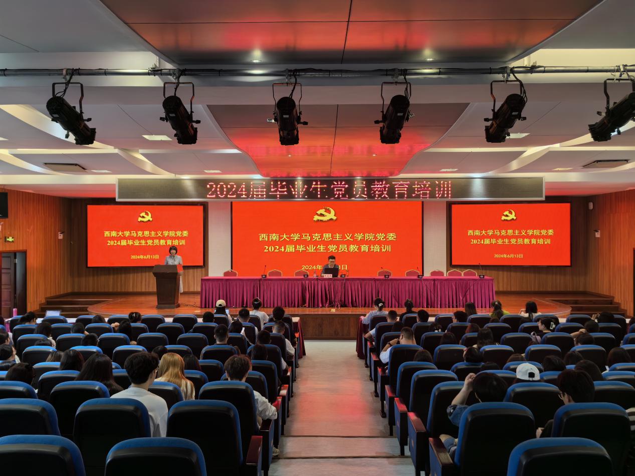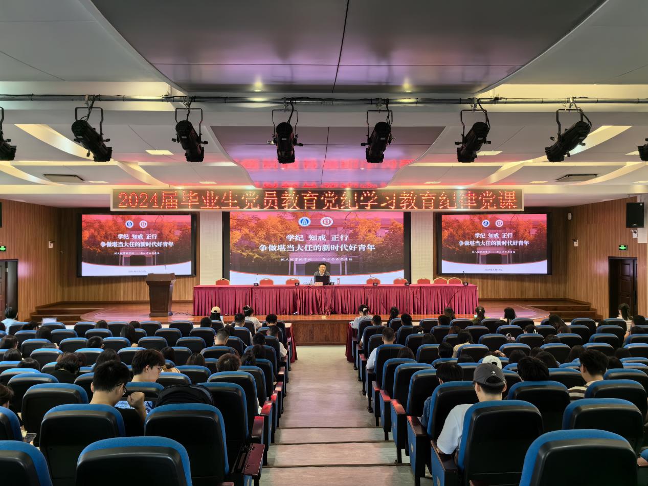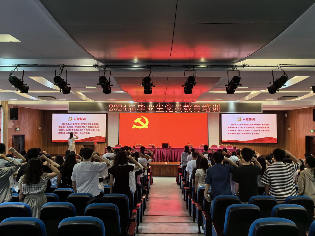 2024年6月13日上午,学院党委在学院505报告厅开展2024届毕业生党员教育培训。学院党委书记吴文杰,学院党委副书记、纪委书记曾艳,学院党委专职组织员黄岚和2024届全体毕业生党员参加,会议由学院党委副书记、纪委书记曾艳主持。
