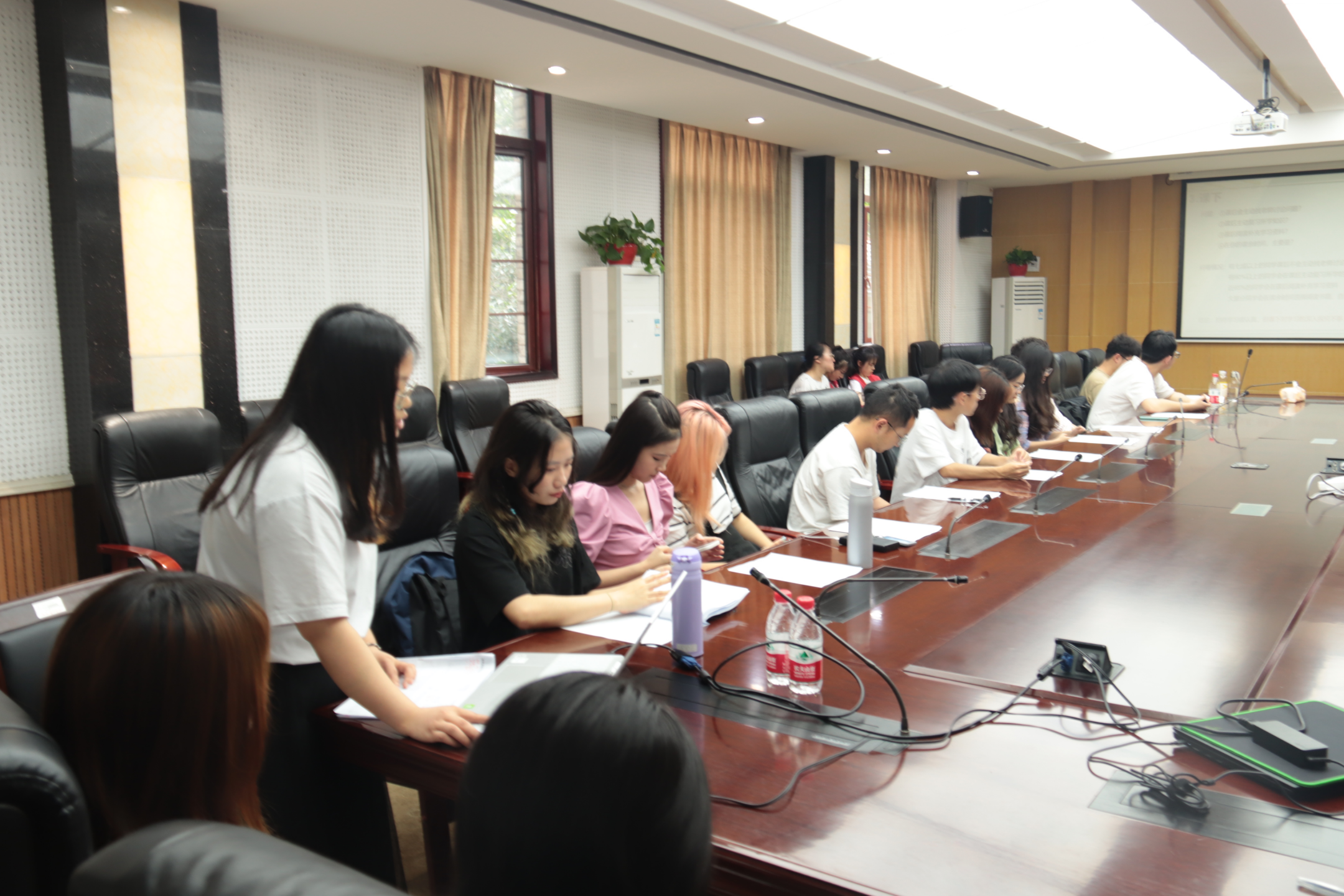 随后,在座师生针对目前学院本科生学风建设的情况展开了热烈讨论,针对进一步推进无手机课堂的问题,有同学提到班委要责任落实到位的建议,针对如何利用好课前5分钟,让同学们快速进入上课状态的问题,有同学提出进一步推进“今日我来讲活动”,并通过与任课老师协调,将课前5分钟分享纳入课程要求中,有效督促同学们认真落实。会上,同学们积极发言,为进一步提升学院学风建设质量建言献策。