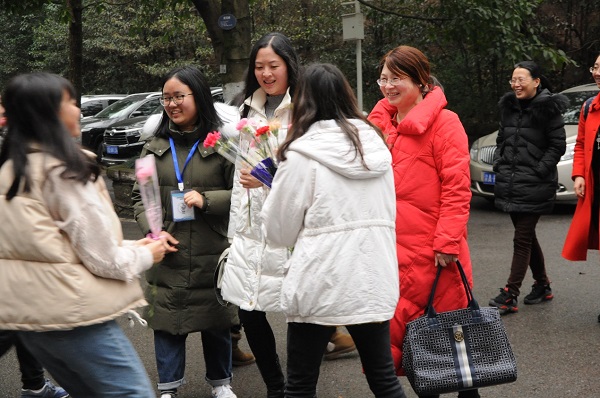 3月8日上午则开展了“沁心馥郁享予兰蕙”——妇女节摆点活动。同学们为每一位女神教师送去鲜花与诚挚的祝愿,构成了学院一道美丽的风景线,其温暖的师生情谊也无不体现着良好的学院氛围。