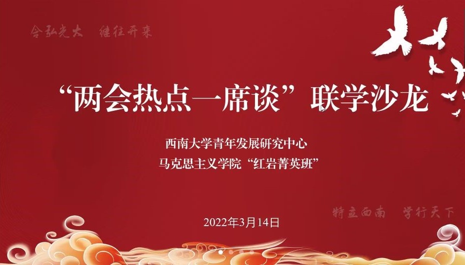 春风浩荡时,共议国之大。2022年3月14日中午,必赢3003no1线路检测中心必赢3003no1线路检测中心“红岩菁英班”联合必赢3003no1线路检测中心青年发展研究中心共同举办“两会热点一席谈”联学沙龙活动。同学们自发组织此次线上学习活动,掀起“两会”精神学习热潮。