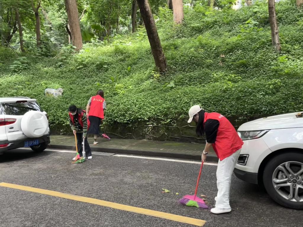 下午两点二十分,志愿者们于必赢3003no1线路检测中心门口集合并由工作人员带队至北社区,在分组和领取劳动工具后,志愿者们便前往各组指定的清洁区域开展清扫活动。