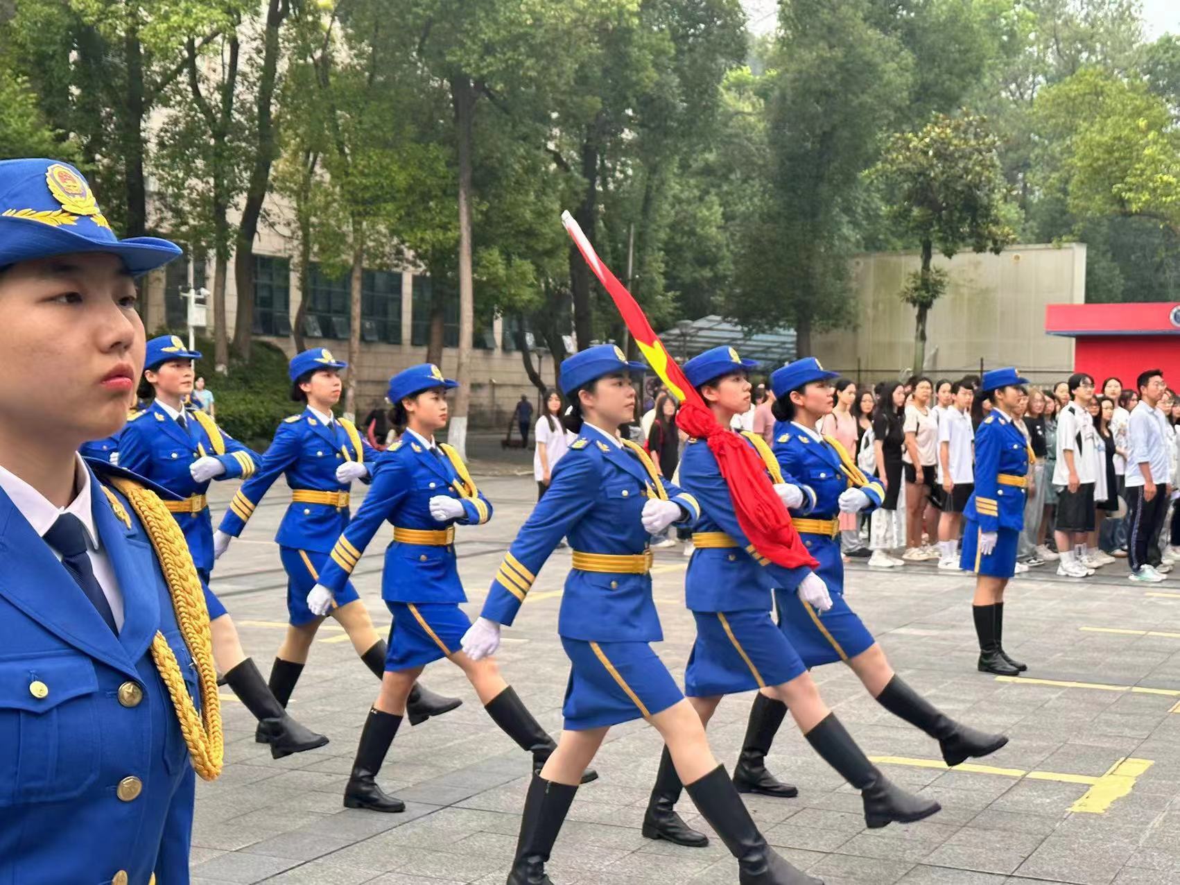 清晨七点,清风微拂,全体师生怀着崇敬和激动的心情汇聚在国旗台下,必赢3003no1线路检测中心女子国旗护卫队迈着铿锵有力的步伐,气宇轩昂地走向升旗台。伴随着激昂的国歌响起,鲜艳的五星红旗在升旗手的熟练操作下缓缓升起。全体师生面向国旗,行注目礼,现场庄严肃穆。