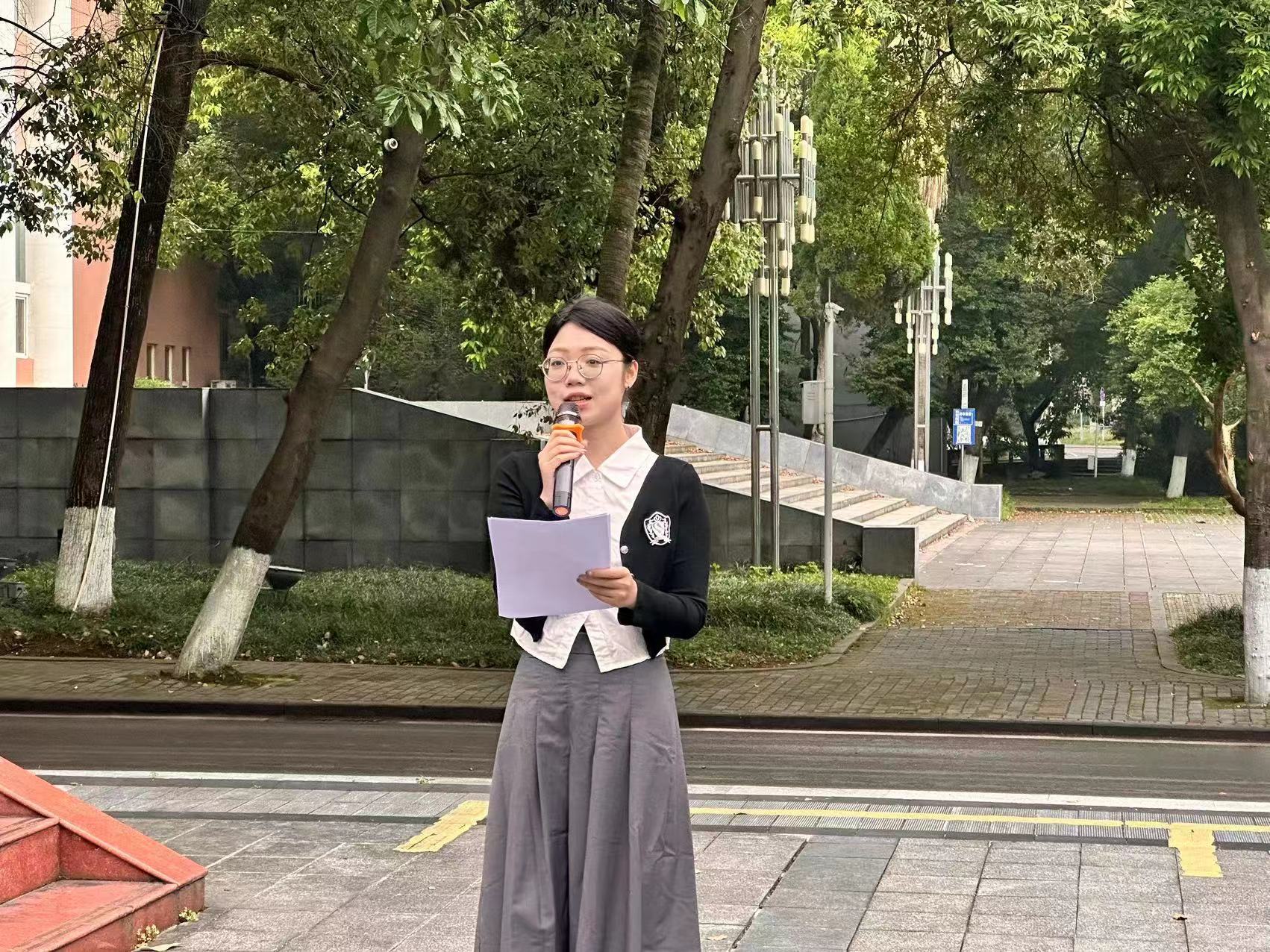 接着,学院党委副书记罗亮作国旗下的讲话,他指出今年是意义非凡的一年,既是新中国成立75周年,也是五四运动105周年,新时代好青年要继承好和发扬好五四精神,书写好挺膺担当的青春篇章,书写挺膺担当新篇章。他强调,马院学子要牢记习近平总书记的嘱托,争做有理想、敢担当、能吃苦、肯奋斗的新时代好青年!
