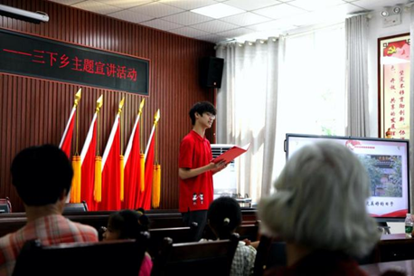 为了更好地把习近平总书记关于全面推进乡村振兴的重要论述传播给基层群众,小分队在专访完代小月书记后前往保坪村村委会理论宣讲室举行了“喜观乡村巨变,展望美好明天”主题活动,成员牛雅歆、李策用通俗易懂的语言,深入浅出地带领村民学习新时代乡村振兴的辉煌征程。