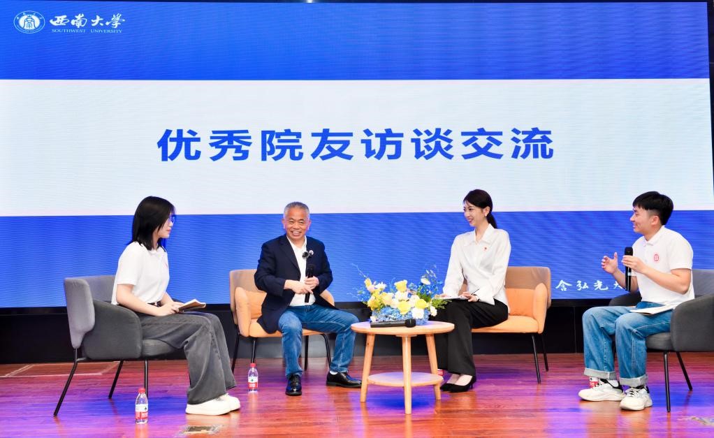 论坛第二阶段,邱代伦与学生代表亲切交谈,现场气氛温馨而热烈。针对大学生自我成长与短期目标冲突的问题,他指出所有目标都应围绕成长这一重点,要坚定地朝着梦想前行。