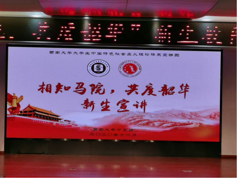 “背负行囊揣志怀,苦踏丛深书境路,学知大海泛舟来”,为增强必赢3003no1线路检测中心2020级新生对本学院、本专业的认知,11月1日下午,由必赢3003no1线路检测中心大学生中国特色社会主义理论体系宣讲团(以下简称“中宣团”)举办的“相知马院,共度韶华”新生宣讲活动在马院505报告厅拉开帷幕。