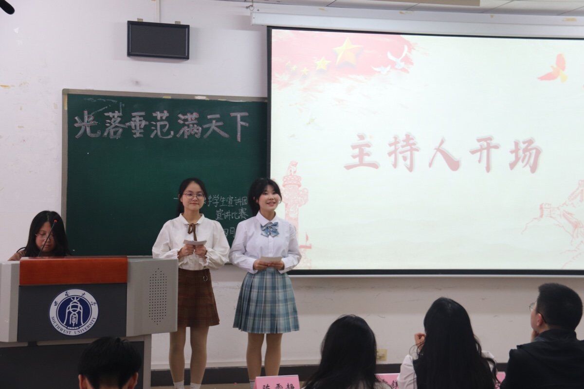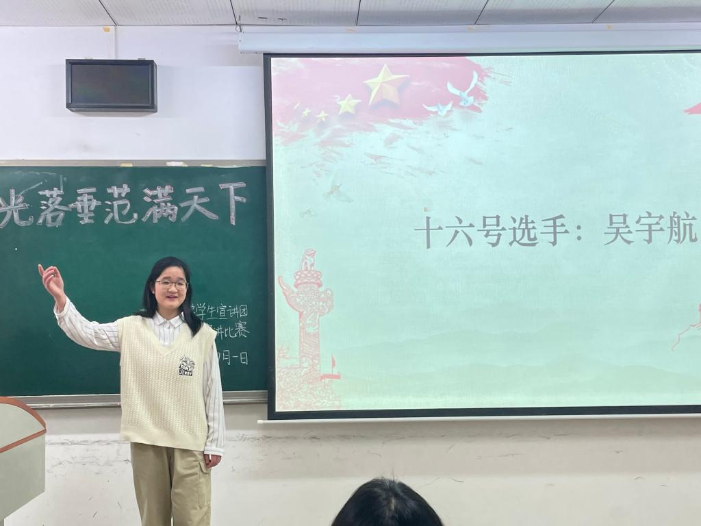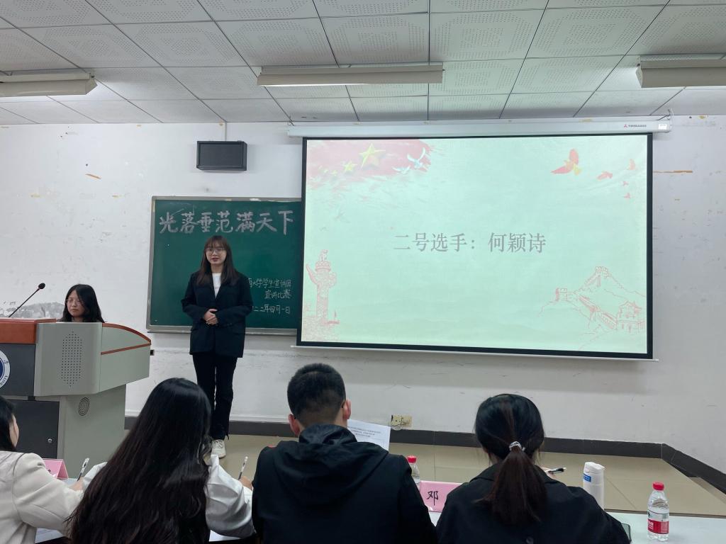 2022年4月1日,“光落垂范满天下”主题宣讲比赛初赛在第十教学楼502教室拉开帷幕。初赛的宣讲形式为片段宣讲,选手们选择的篇目不尽相同,各有侧重。不管是中国“核潜艇之父”黄旭华的故事,还是逆行者徐瑜、刘煜亮的家国情怀,抑或是小宣人的成长历程,都细腻饱满、真切动人。最终,经过评委们的综合打分,八位选手进入决赛。