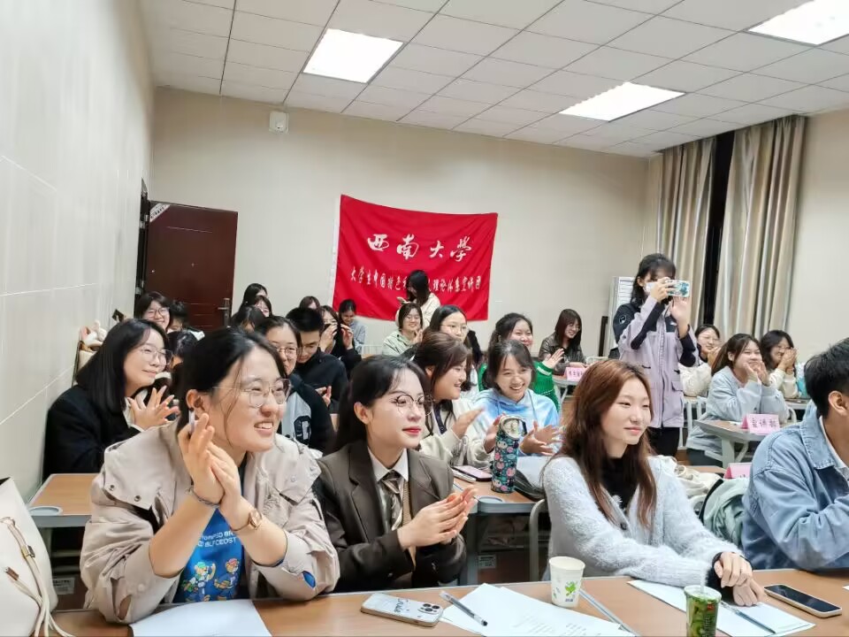 11月9日,“泼墨挥毫写风雨,谈霏玉屑绘征途”宣讲技巧培训活动在国治院3101举办。在第一个环节中,第26届优秀宣讲员刘钰煊师姐为新团员们带来示范宣讲《置身混沌,探求光明》,刘钰煊师姐娓娓道来的宣讲紧紧牵动着听众,深深触动着在场每一个人;快板队成员为团员们带来精彩的快板舞表演,在欢快的快板声中,团员们感受到了快板的魅力。随后,宣讲部部长胡晓雯对新团员们进行宣讲技巧培训,宣讲部副部长刘林耀进行撰稿培训,培训部副部长黄诗睿和部长王婷分别为团员们进行了宣讲礼仪培训以及快板技巧培训,部长们的倾囊相授让新团员们受益匪浅。作为学生宣讲团的一员,每一位小宣人都以真心充盈自我,以热忱传递理论。在之后的宣讲过程中,希望新团员们保持初心、坚定立场,不断在实战中苦练能力、锻炼自我。