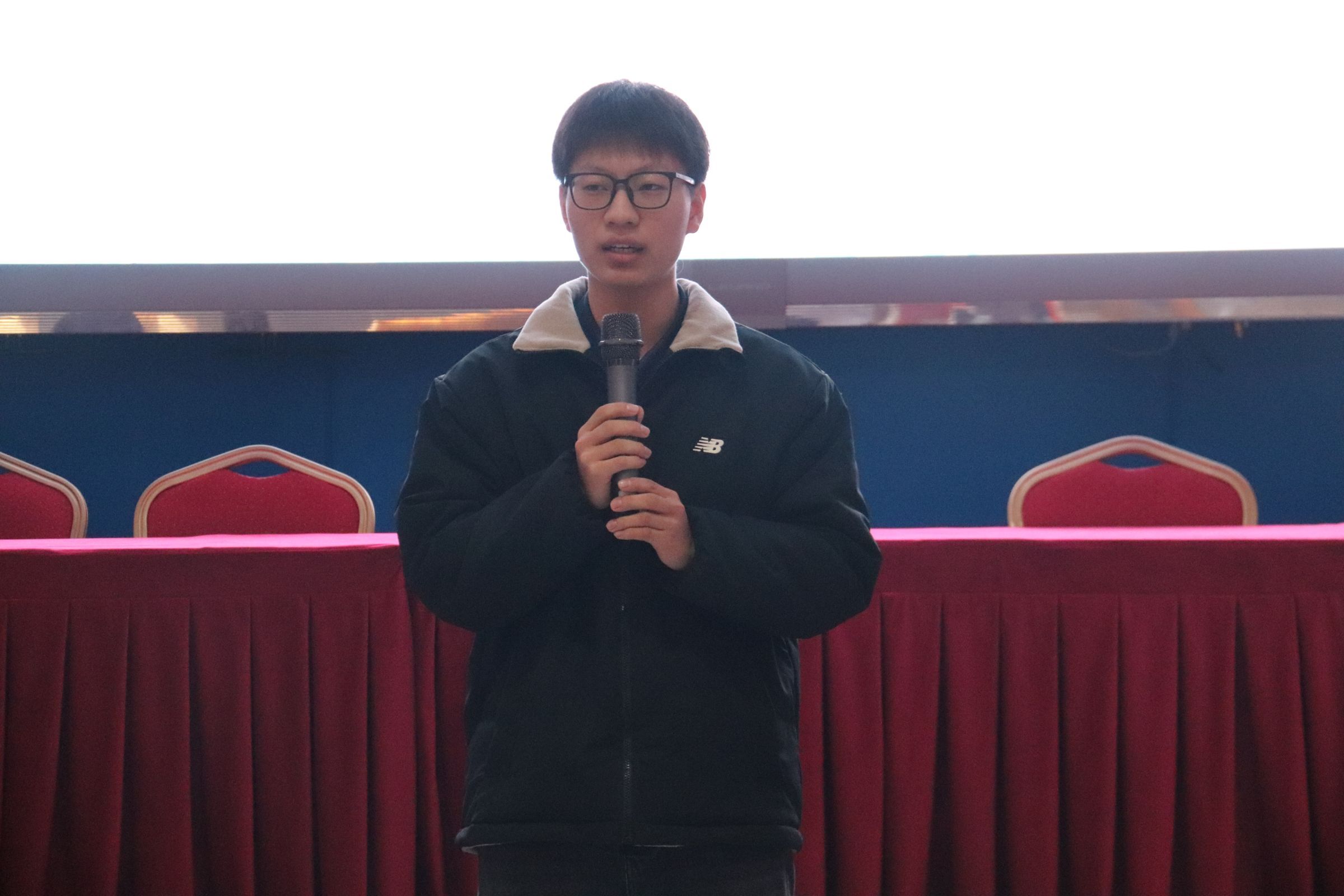 随后,主席团代表杨雨鑫发言,他首先对各部门表示肯定和赞赏,对所有团员的辛勤付出表示感谢。之后他用“四个动作”——规定动作高质量、常规动作添新意、示范动作展风采以及特色动作提效能,从整体上对本学期全团工作进行了总结。最后,为提高学生宣讲团的工作效能,他分别从总体上和个人上、小宣人的能力上和心态上提出具体建议,并针对各部门的工作进行点评与总结。