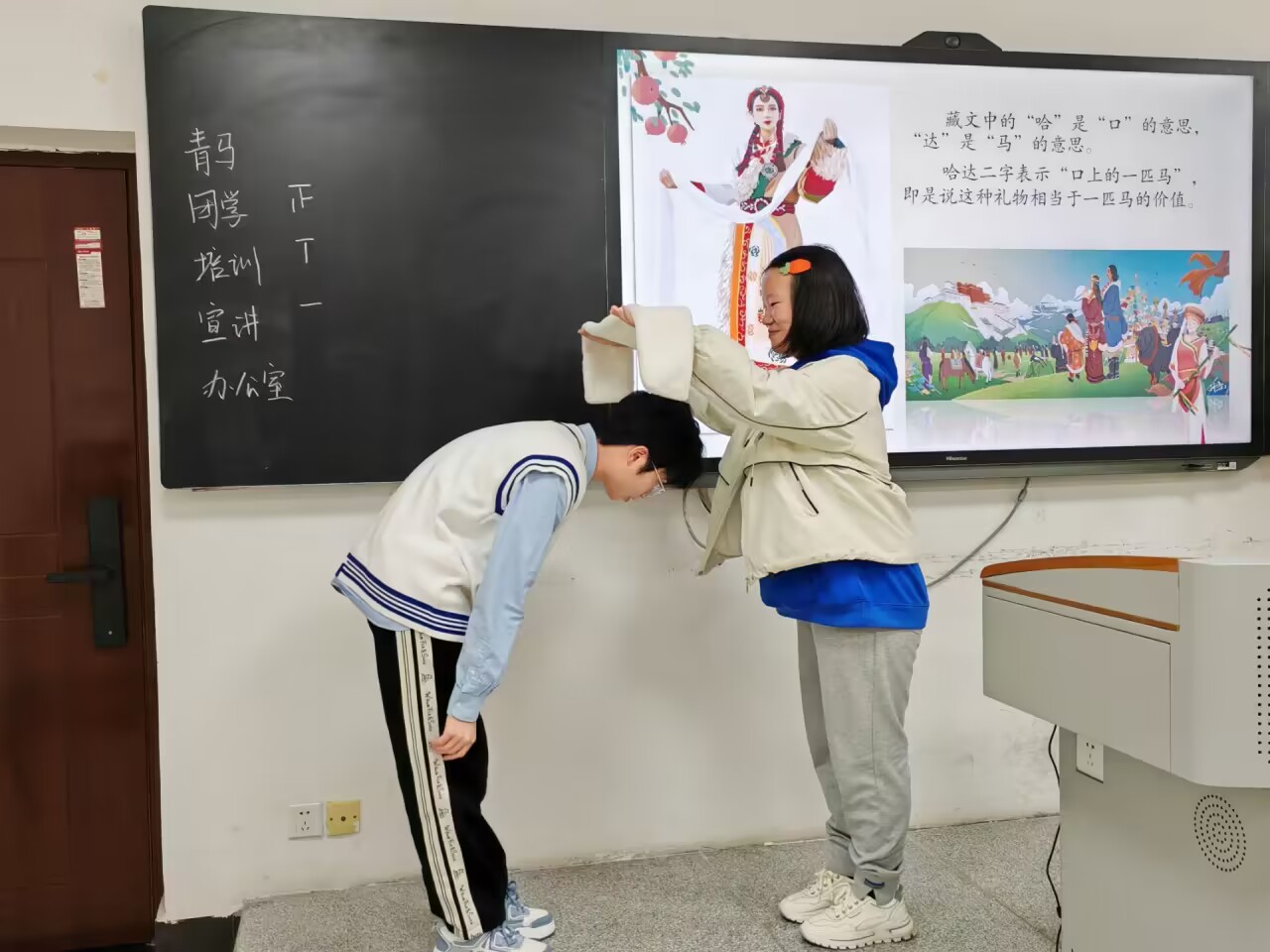 榜样立标,薪火相传。团课现场,团员们通过亲自演绎孔繁森的感人事迹,使孔繁森坚定的理想信念、崇高的道德品质和无私的奉献精神更为具体可感,其间也展现出了少数民族与汉族之间互相关心的深厚情谊。“赤诚、担当、大爱、无我”的孔繁森精神,激励着团员们续写民族团结进步的新篇章。