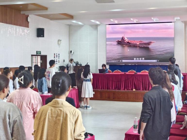 活动伊始,全体参会成员起立,齐唱中国共产主义青年团团歌。“我们是五月的花海,用青春拥抱时代”,伴随着嘹亮而又激情澎湃的歌声,大会拉开序幕。