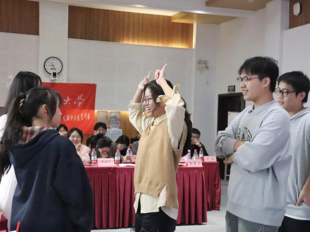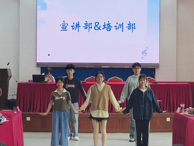 在节目表演环节中,小宣人们纷纷登台,尽情展现部门风采。歌曲合唱默契满满,舞蹈表演精彩绝伦,沉浸式的配音表演让所有团员仿佛身临其境……现场欢笑不断、掌声不止。紧接着的游戏互动让会场氛围达到高潮,上台参与游戏的团员相互配合得十分默契,不仅增进了彼此间的了解,也提高了团队的凝聚力,大家在欢声笑语中感受到学生宣讲团大家庭的温暖和力量。