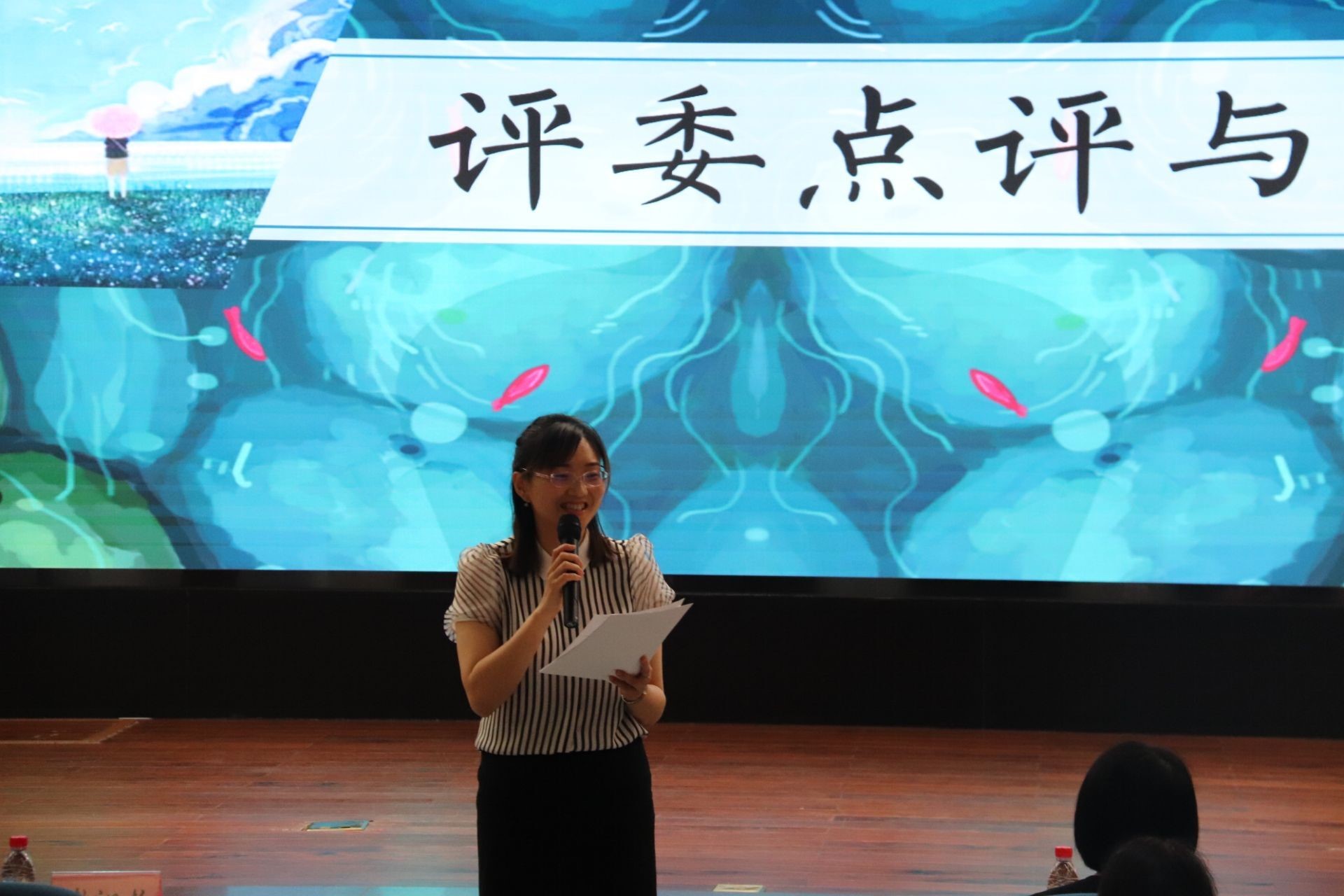 9支队伍的展示环节结束后,评委陈铮老师从授课形式、设计切点、理论深度等三方面给出点评和建议:一是设计者要区别心理班会课和心理团辅并切实考虑受众的群体特征;二是教师要对授课内容的选择要落实到具体,做到“小而实”;三是心理班会设计在以心理学内容作为支撑的基础上,还应兼具创意性和可行性。评委胡乐老师以“准、透、行、情”四字概括心理班会的特色,充分肯定了选手们的表现,并以“情”字为重心,强调一堂成功的班会就是一次心灵的碰撞、情感的共振。