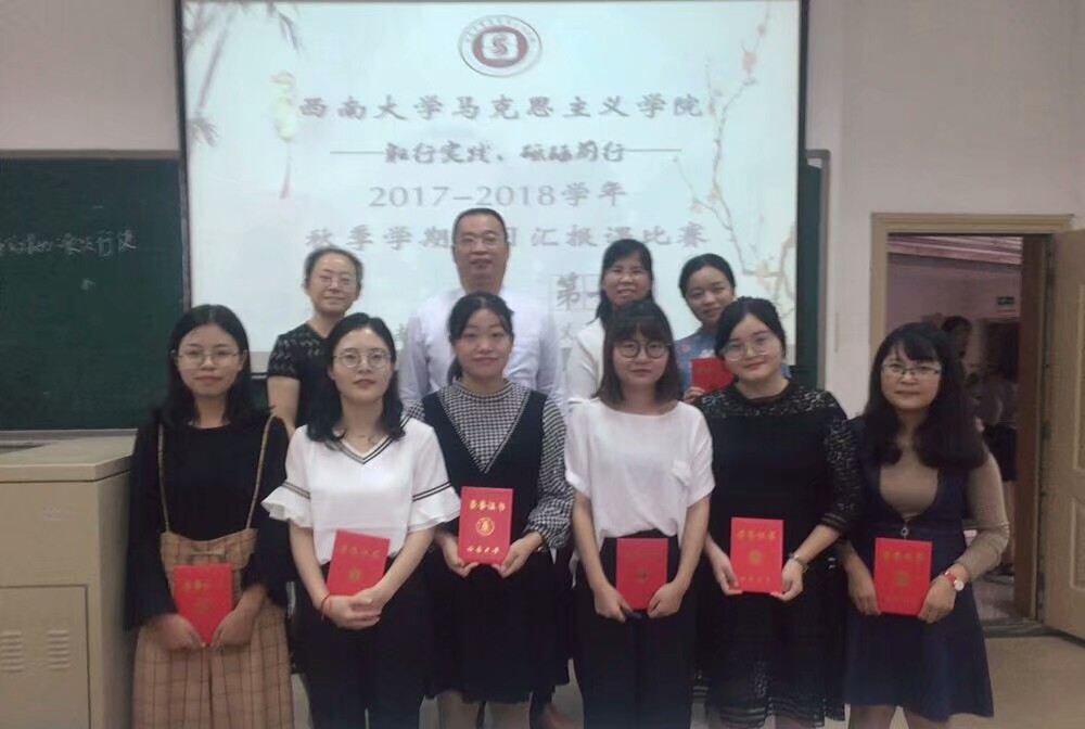 第一场实习汇报课比赛于2018年9月13日15:00在第十教学楼203教室举办。来自院队重庆一中实习小队的张小翠通过引导学生猜测特色民族活动,调动学生学习积极性,同时引出我国的具体国情,进而过渡到《处理民族关系的原则之民族平等》这一课题。其次通过重庆市2018年针对少数民族同学的加分政策,引发学生的思考,帮助学生们进一步理解民族平等的含义。