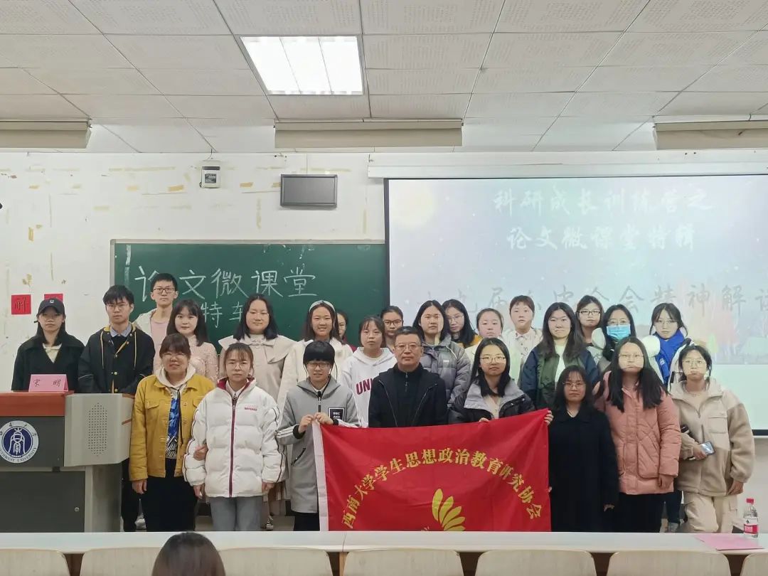 中国共产党第十九届中央委员会第六次全体会议于11月8日至11日在北京召开。为帮助马院学子进一步深入学习贯彻十九届六中全会精神,强化学科意识,走在时政前沿,12月4日上午9:30,必赢3003no1线路检测中心学生思想政治教育研究会特此于十教301举办科研成长训练营之“论文微课堂特辑——十九届六中全会精神解读”,邀请嘉宾宋明老师带领同学们全面系统学习领会十九届六中全会的内涵与要义,从党的百年奋斗重大成就和历史经验中汲取智慧力量。