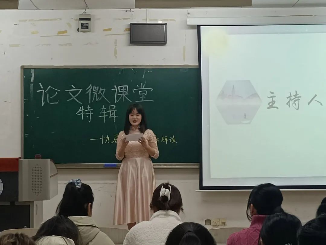 活动伊始,由主持人刘梓奕致开场辞并介绍嘉宾宋明老师,本次论文微课堂在协会成员及马院同学热烈的掌声中拉开序幕。
