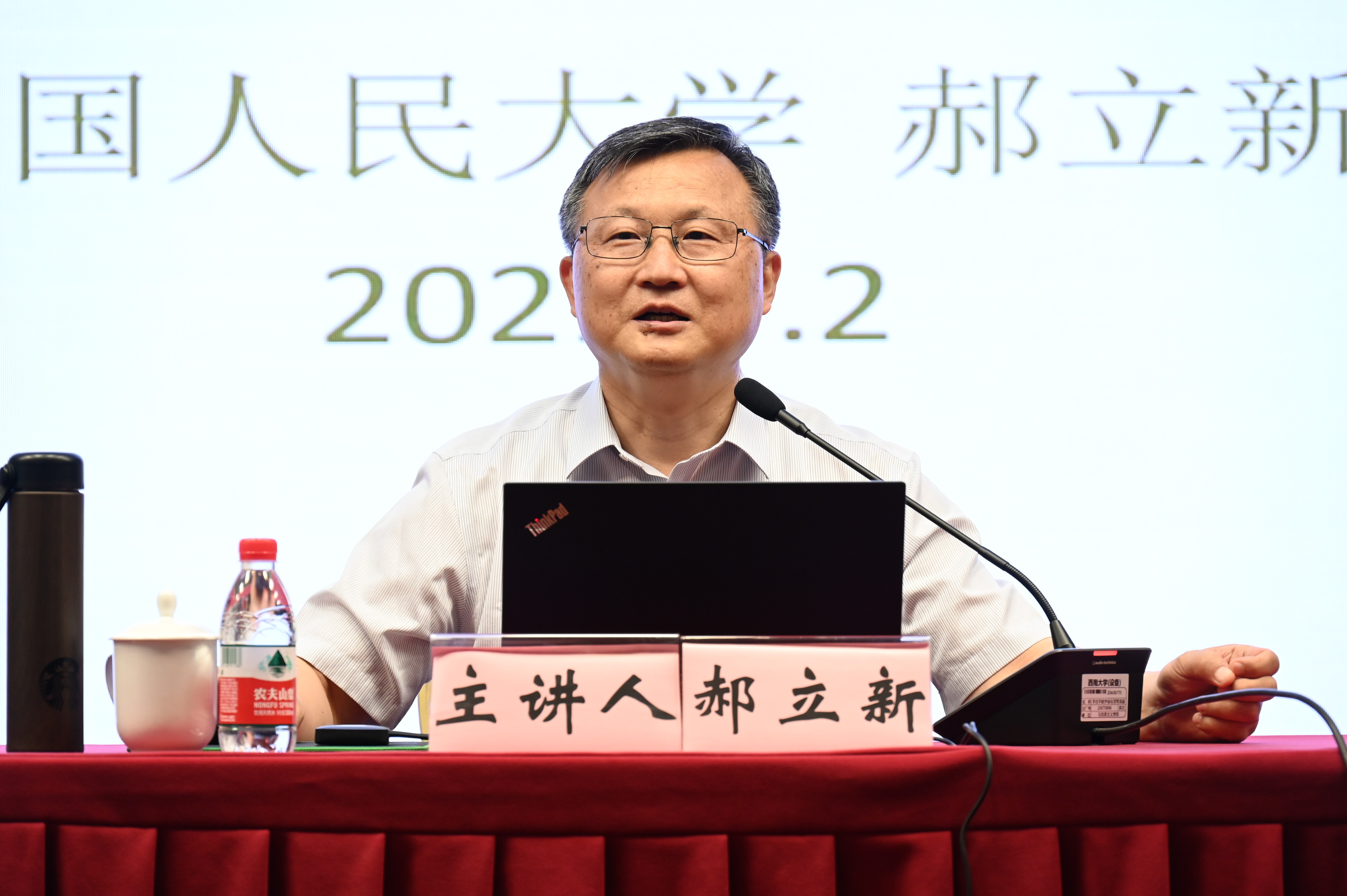 郝立新教授对习近平总书记在庆祝中国共产党成立100周年大会上的讲话内容作了简要的导读,并围绕中国共产党的百年历史是在马克思主义指导下成长壮大、不断发展的历史;党的百年历史是党的指导思想与时俱进、创新发展的历史;新时代党的指导思想创新发展的基本特征三个方面进行了详尽的阐释。郝立新教授基于以上分析的讲解认为只有始终坚持把马克思主义作为指导思想,我们党才能不断取得胜利,党的指导思想的创新永远在路上。中国共产党人要按照总书记的要求,更加自觉、更加刻苦地学习马列主义,学习毛泽东思想、邓小平理论、“三个代表”重要思想、科学发展观,学习习近平新时代中国特色社会主义思想。要把读马克思主义经典、悟马克思主义原理当作一种生活习惯、当作一种精神追求。要带着问题学、联系实际学,更好把科学思想理论转化为认识世界、改造世界的强大物质力量。