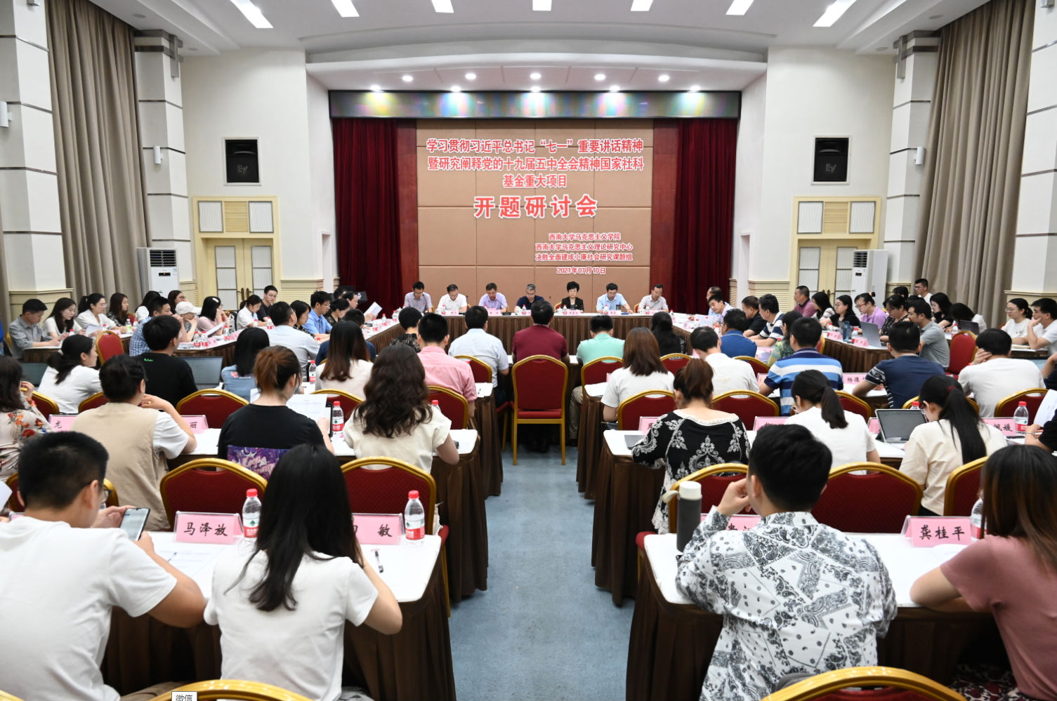 出席开题研讨会的专家有教育部人文社科重点基地湘潭大学毛泽东思想研究中心主任、国务院学位委员会马克思主义理论学科评议组成员、国家人才计划李佑新教授,兰州大学新时代思想政治教育工作研究院执行院长、教育部高等学校马克思主义理论类专业教学指导委员会委员王学俭教授,西安交通大学必赢3003no1线路检测中心院长、国务院学位委员会马克思主义理论学科评议组成员、国家人才计划燕连福教授,重庆市政协常委、文化文史和学习委员会副主任杨清明教授,重庆邮电大学必赢3003no1线路检测中心院长代金平教授。重庆市社科联党组成员、副主席阳奎兴,重庆市委宣传部理论处副处长姜晓飞,必赢3003no1线路检测中心党委副书记兼必赢3003no1线路检测中心党委书记潘洵出席会议并致辞。必赢3003no1线路检测中心党委常委、党委宣传部部长、党委网络工作部部长李荣华,必赢3003no1线路检测中心必赢3003no1线路检测中心党委常务副书记廖晓衡,项目组全体成员、相关单位负责人及师生代表共百余人参加会议。