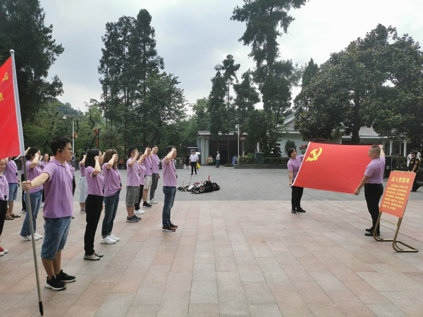 考察研修过程中,老师们聆听了“邓萍同志的故事”“红军卫生员龙思泉的故事”“钟赤兵三次截肢的故事”“青杠坡战斗的故事”等诸多感人事迹,被革命者不畏艰难、英勇战斗的精神品质深深感染着。老师们顶着炎炎烈日,怀着沉痛的心情,专程前往遵义红军烈士陵园和青杠坡战斗遗址,向革命先烈敬献花篮、默哀鞠躬,表达缅怀思念之情。在红军烈士纪念碑前,全体党员面向鲜红的中国共产党党旗静默肃立,在廖晓衡同志的带领下,大家举起右手,重温入党誓词,立志把革命精神发扬好弘扬好。