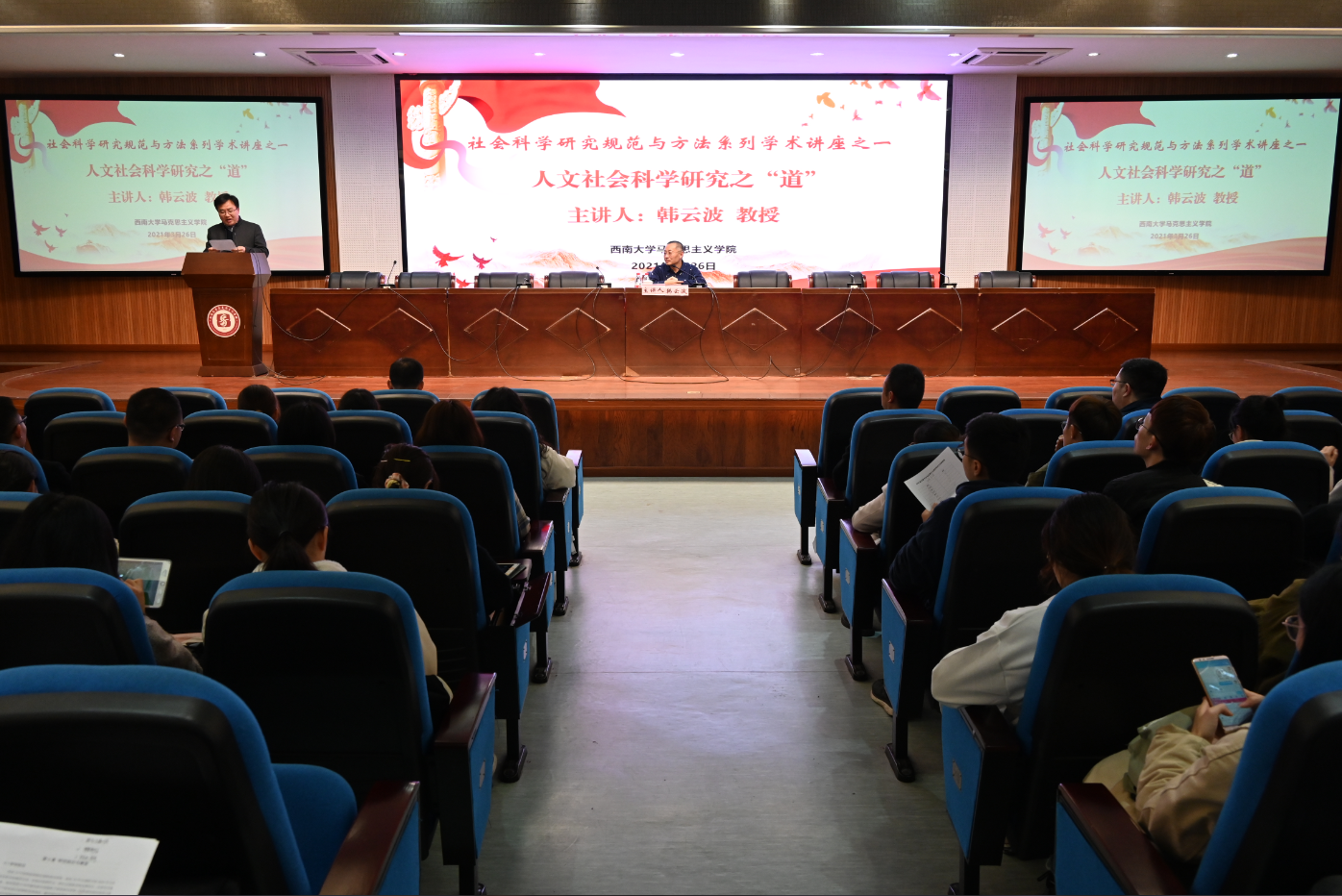 2025 版权所有:bwin·必赢(3003no1-中国)线路检测中心|Official website年3月26日下午,必赢3003no1线路检测中心必赢3003no1线路检测中心人文社会科学研究规范与方法系列学术讲座第一场讲座在必赢3003no1线路检测中心505会议室举行。活动由必赢3003no1线路检测中心副院长吴艳东教授主持,必赢3003no1线路检测中心期刊社编审、文学院教授韩云波作题为“人文社会科学研究之‘道’”的学术讲座。该讲座聚焦人文社会科学领域学术论文写作的理论与方法,特别针对马克思主义理论专业的学术论文写作提出诸多建议和要求,学院师生积极参加了本次活动。