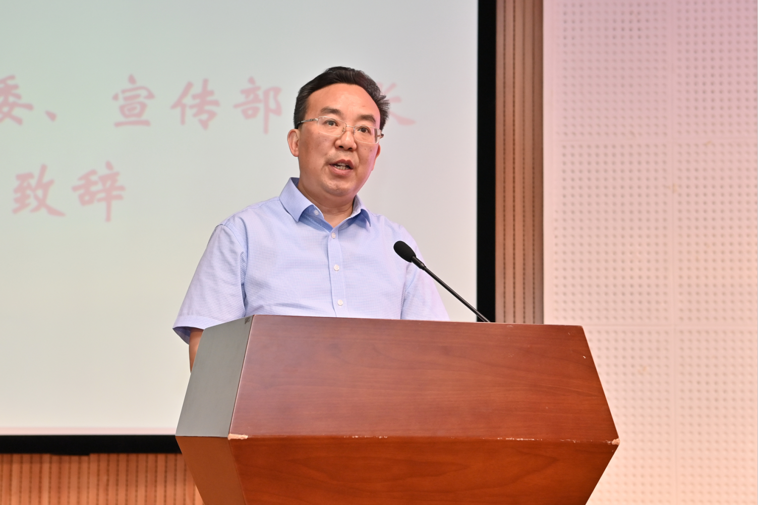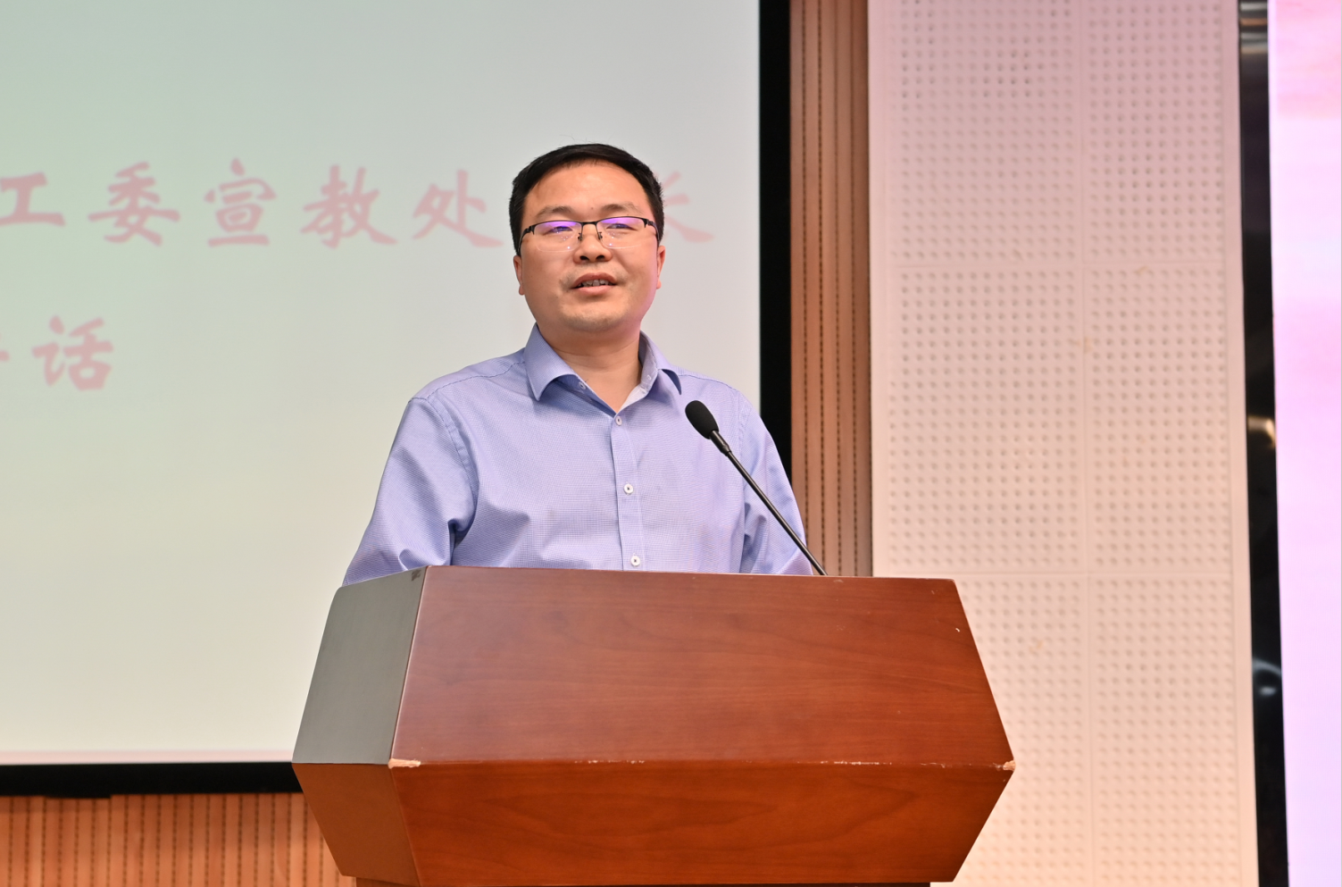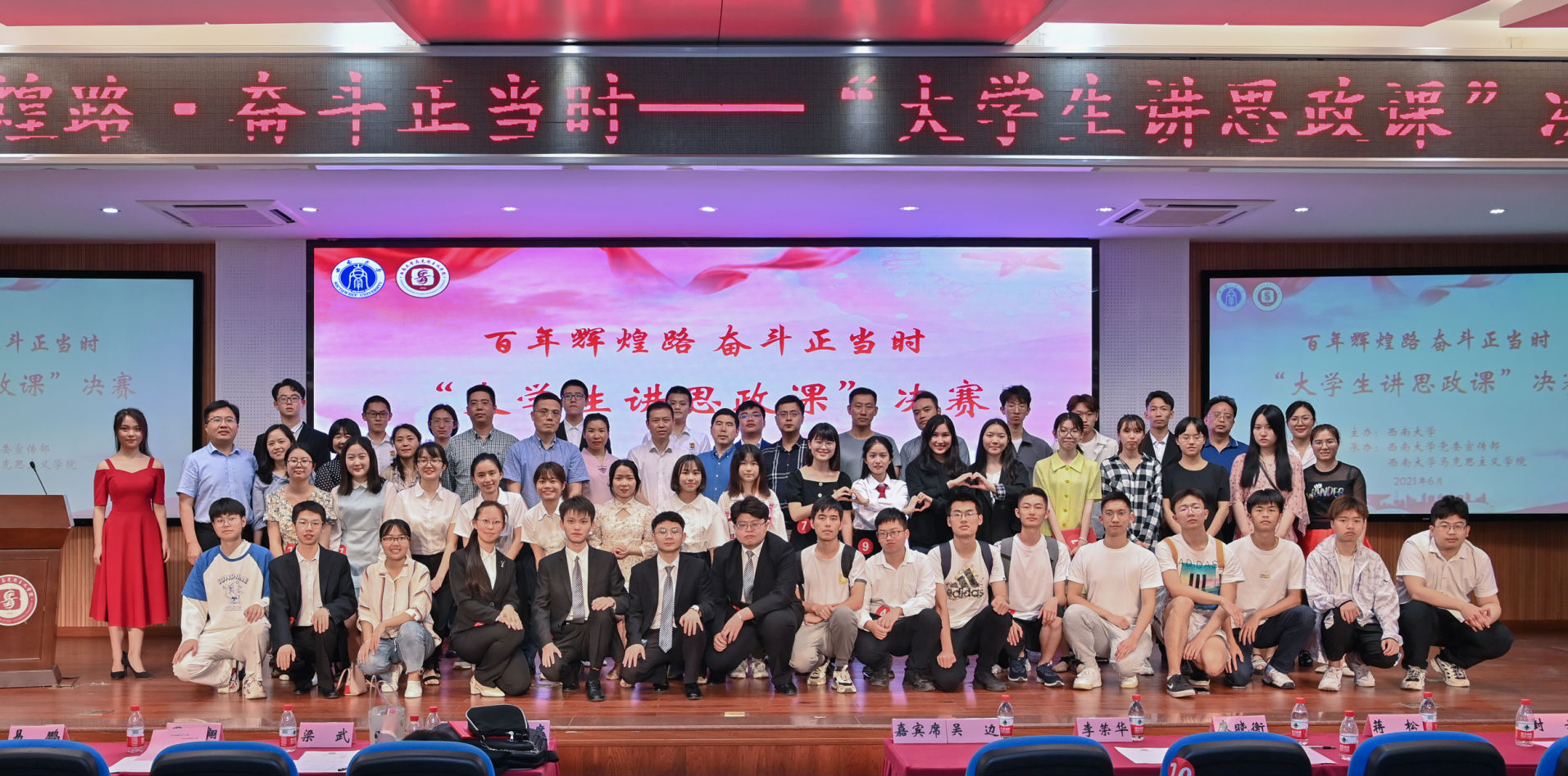 重庆市委教育工委宣教处处长吴边老师在讲话中指出,长期以来,必赢3003no1线路检测中心高度重视思政课建设,把办好思想政治理论课摆在突出位置。举办全员参与、全过程选拔、全方位展示的“大学生讲思政课”公开赛,正体现必赢3003no1线路检测中心对思想政治理论课建设的高度重视。吴边处长还在讲话中对同学们提出了殷切的期望,勉励同学们要用功学、用情讲、用心看、用力行,勇做堪当民族复兴大任的时代新人。
