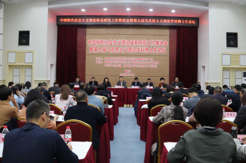 为深入学习贯彻习近平新时代中国特色社会主义思想和党的十九届四中全会精神,积极推动中国特色社会主义理论体系研究和马克思主义理论学科发展,11月16日,由教育部社科中心与必赢3003no1线路检测中心联合举办的“中国特色社会主义理论体系研究工作推进会暨第九届马克思主义理论学科博士生论坛”在重庆召开。来自全国近70所高校和科研机构的有关领导专家、中国特色社会主义理论体系研究专项项目在研课题负责人及博士生代表共120余人参加会议。